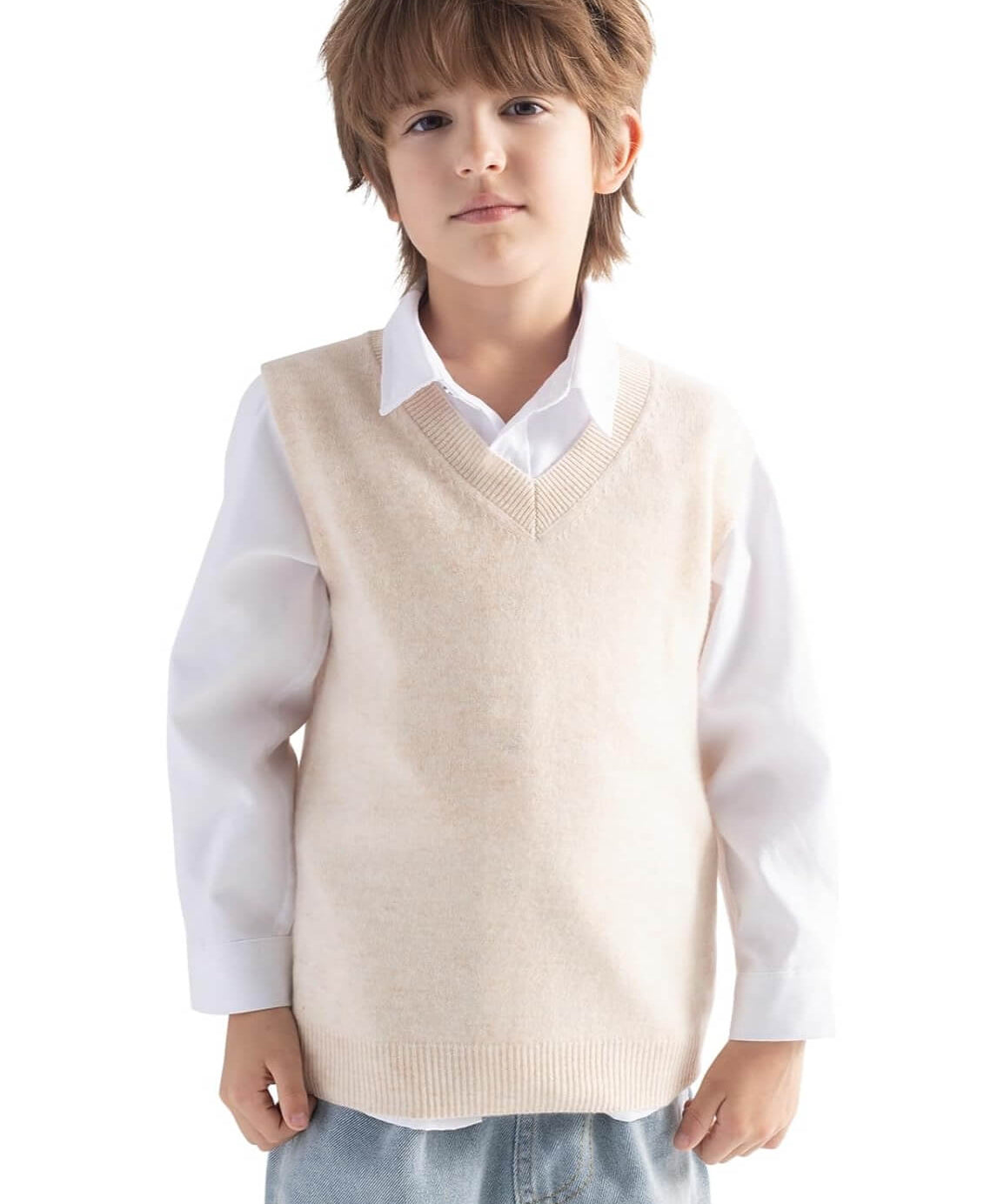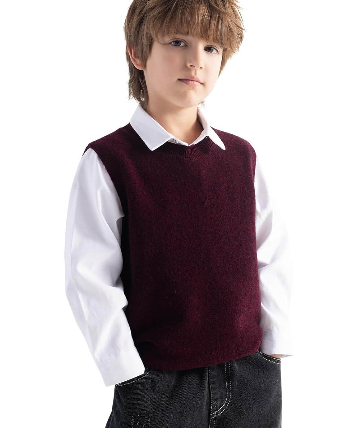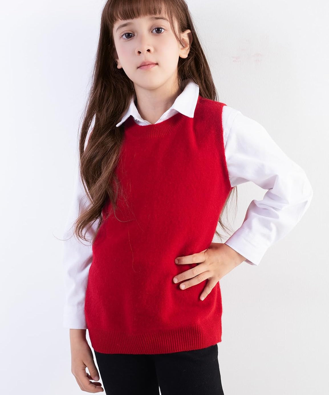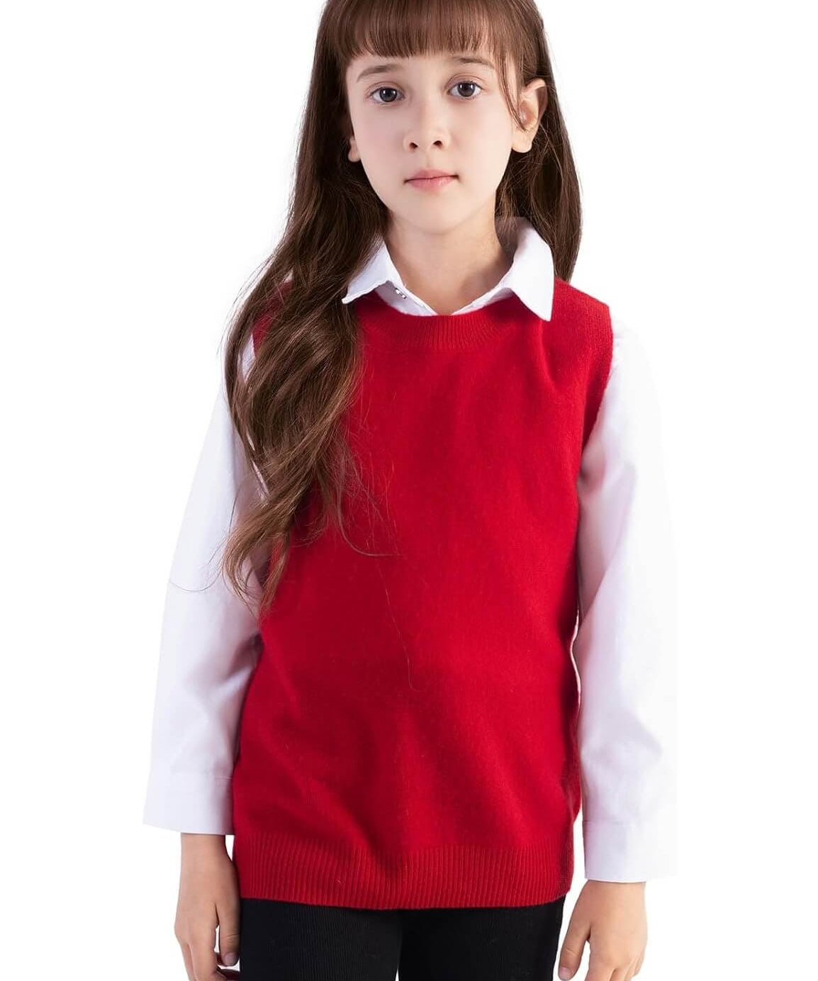 Boys & Girls 100% Merino Wool V-Neck Sleeveless Knit Sweater Vest