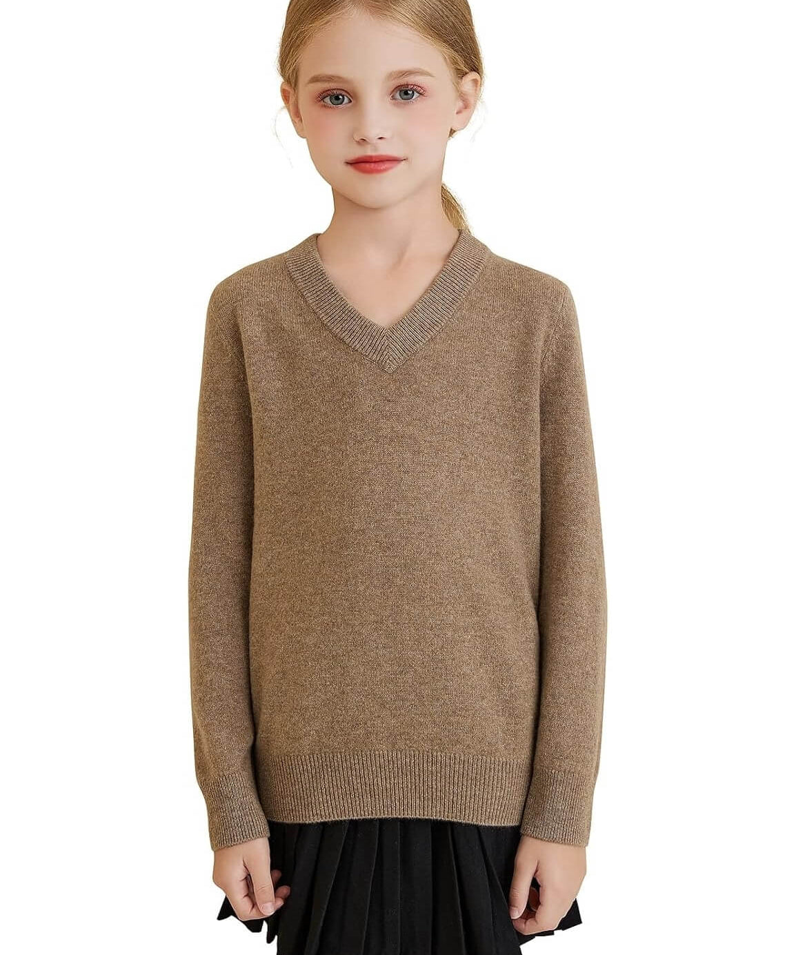 Girls 100% Merino Wool Classic V-Neck Sweater