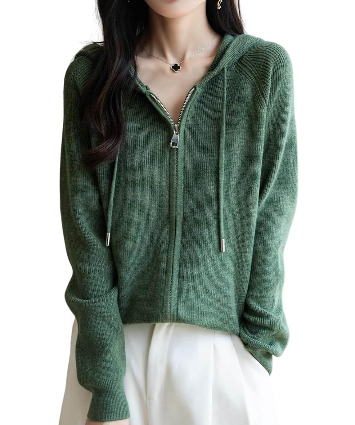 Merino Wool Blend Ribbed Zipper Hooded Cardigan