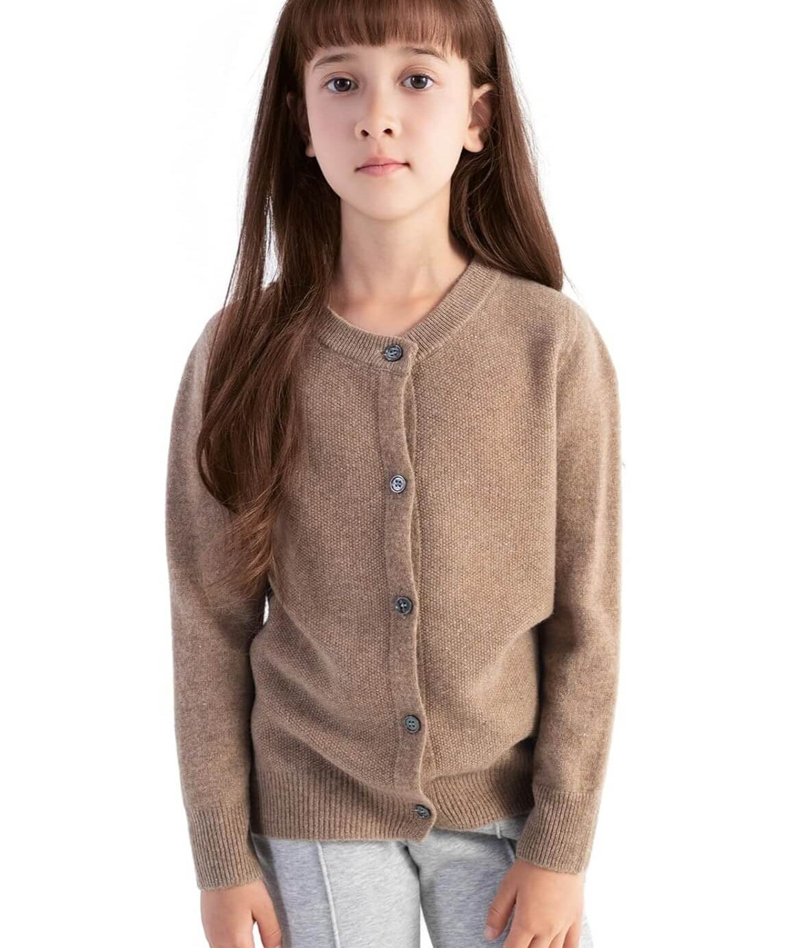 Girls' 100% Merino Wool Seamless Crewneck Cardigan