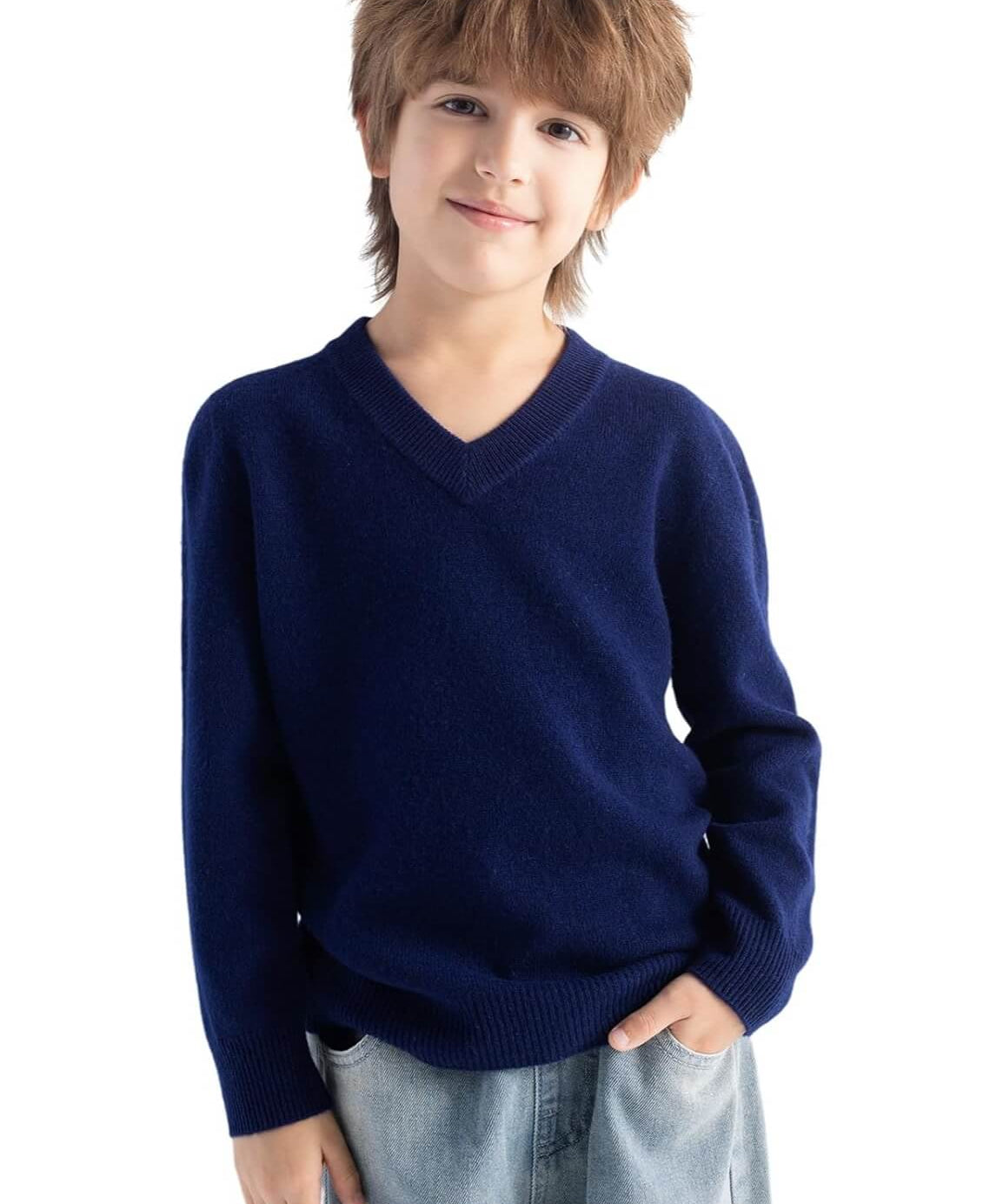 Boys and Girls 100% Merino Wool Seamless V-Neck Sweater