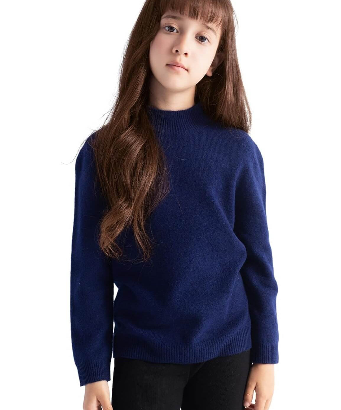 Girls' 100% Merino Wool Seamless Mock Neck Sweater