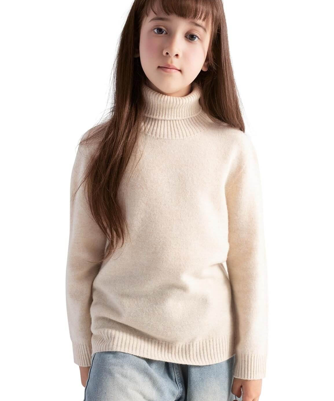 Girls' 100% Merino Wool Seamless Turtleneck Sweater