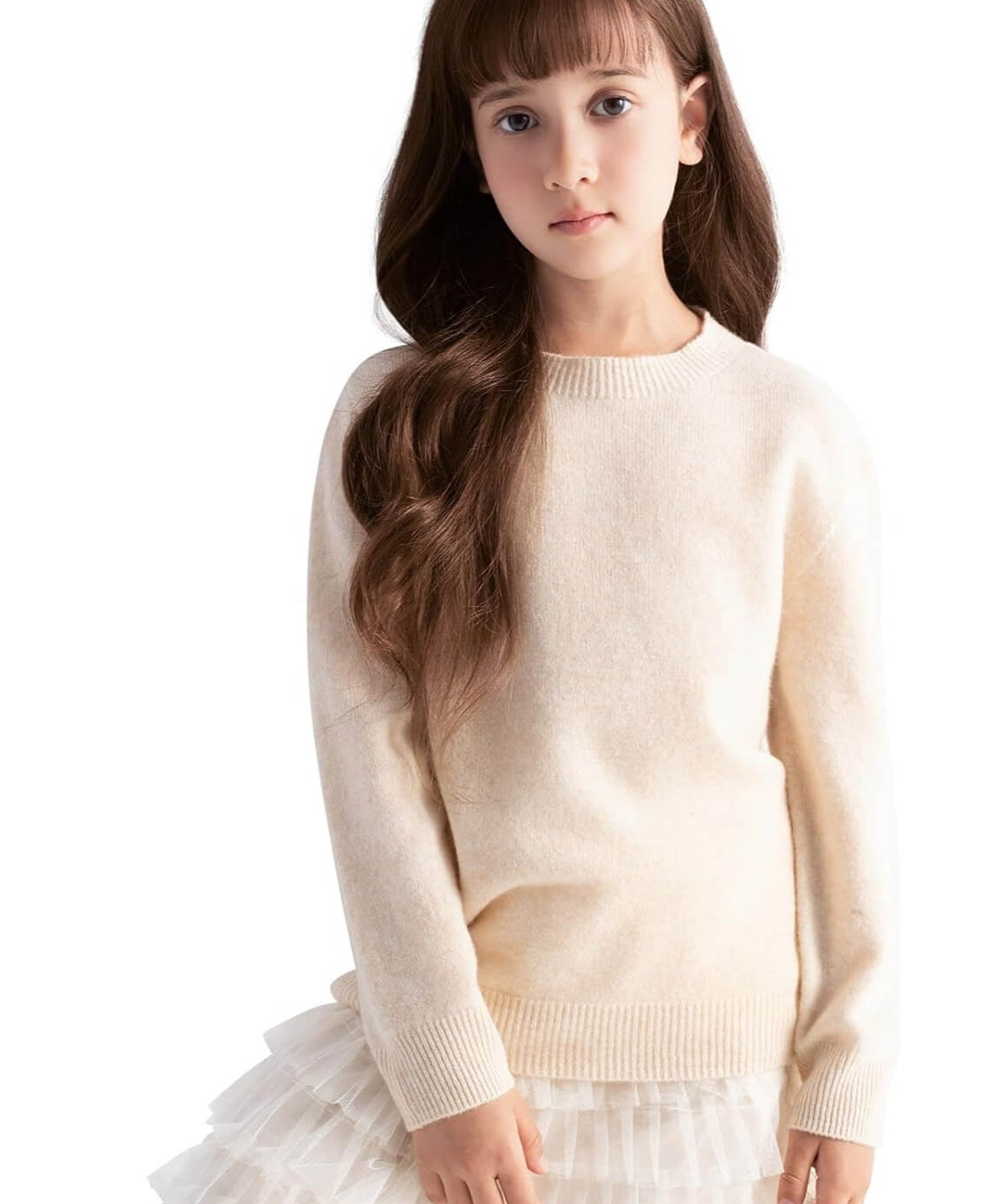 Girls' 100% Merino Wool Seamless Crewneck Sweater