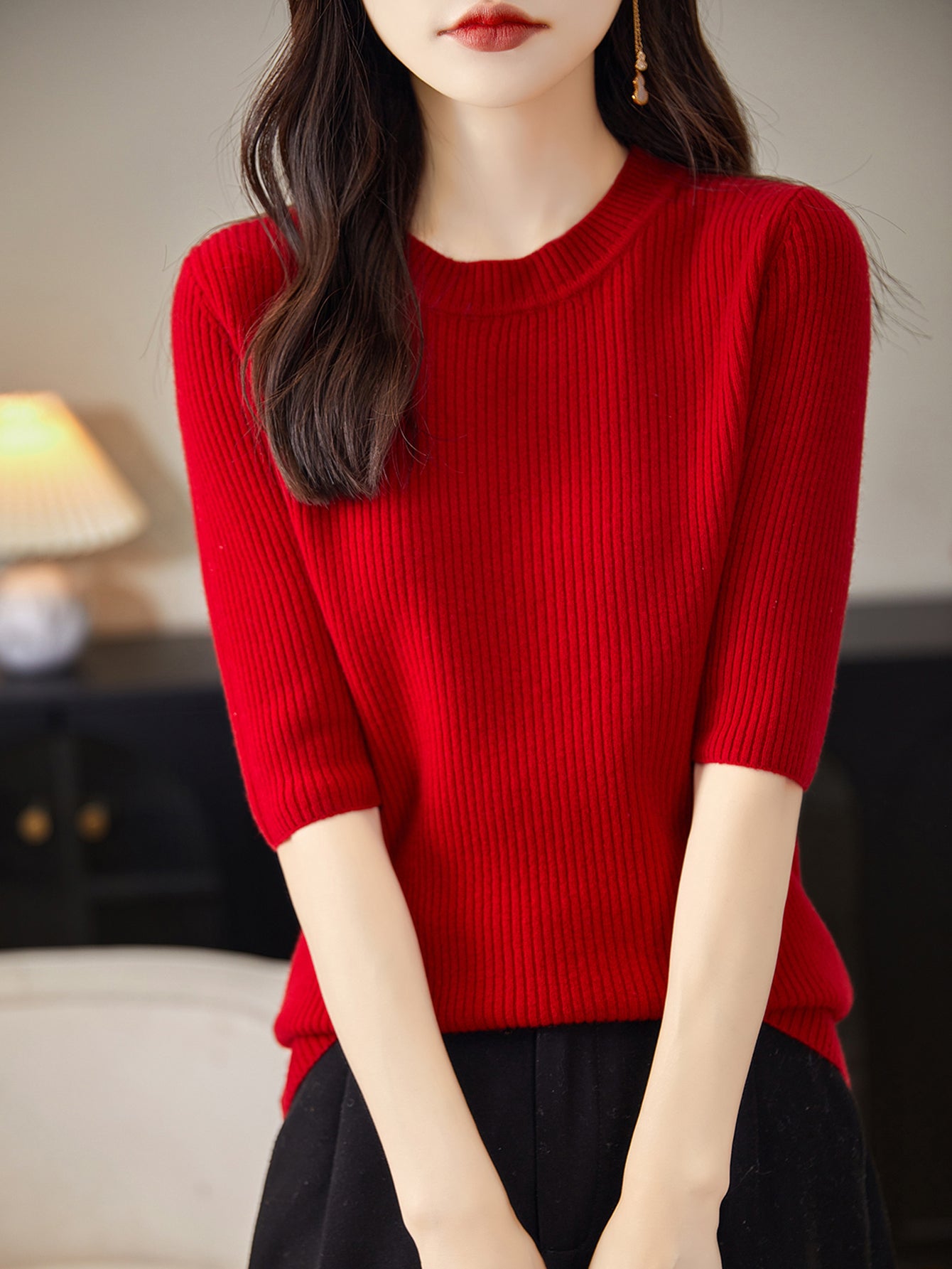 100% Merino Wool Crewneck Short Sleeve Sweater