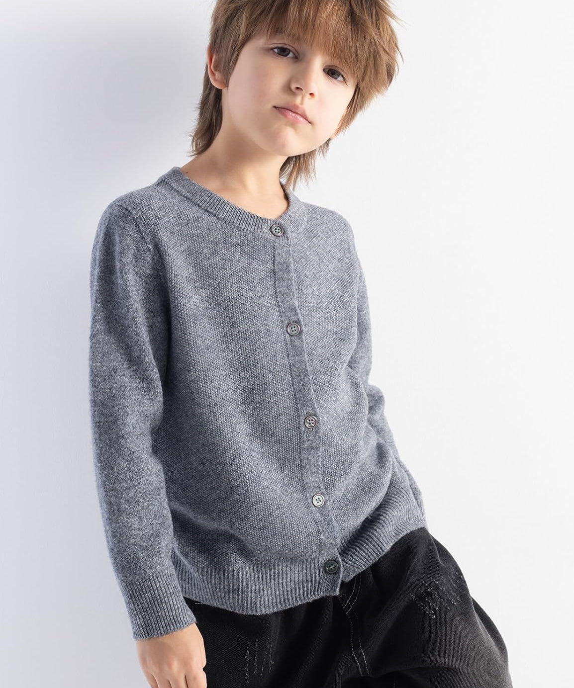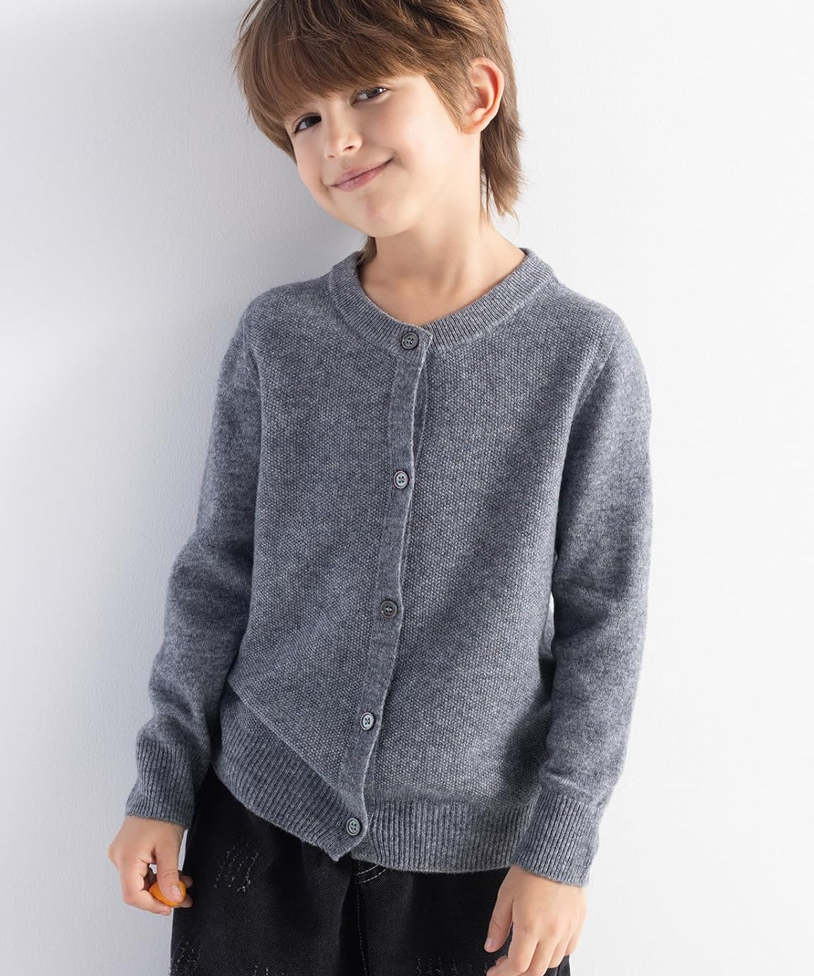 Boys' 100% Merino Wool Seamless Crewneck Cardigan