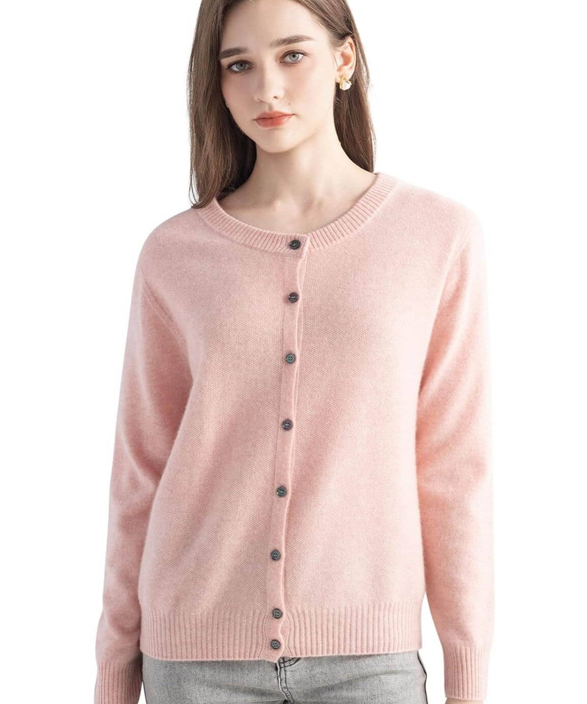Mongolian Cashmere Cardigan Crewneck Sweater