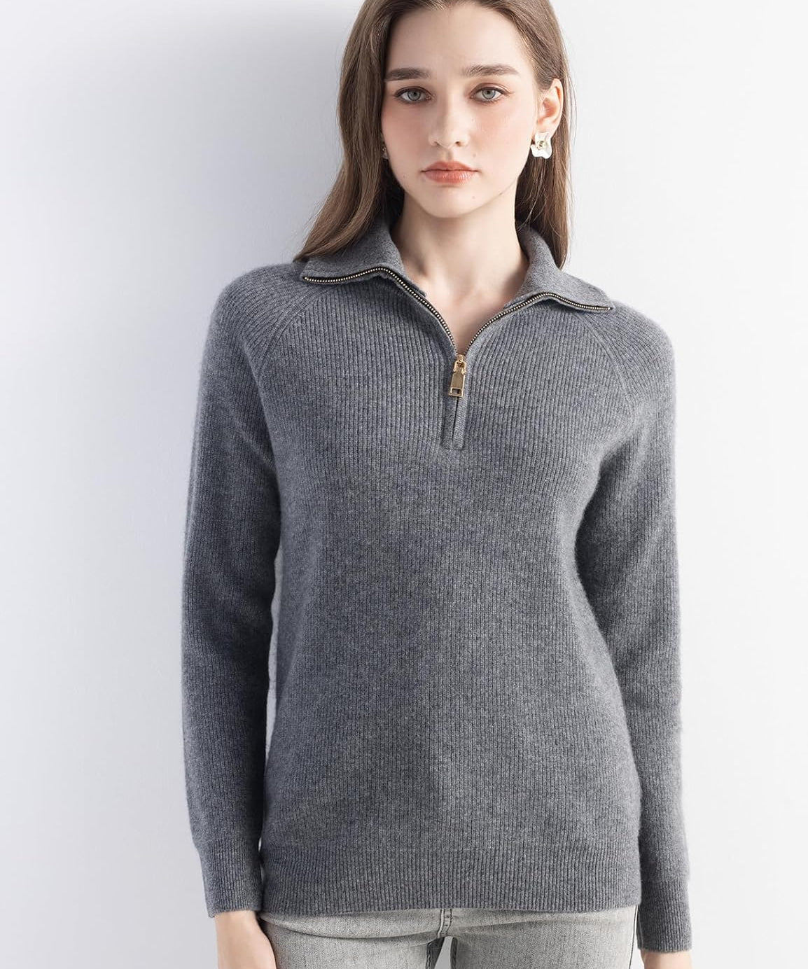 Mongolian Cashmere Soft Knit Zip Neck Sweater