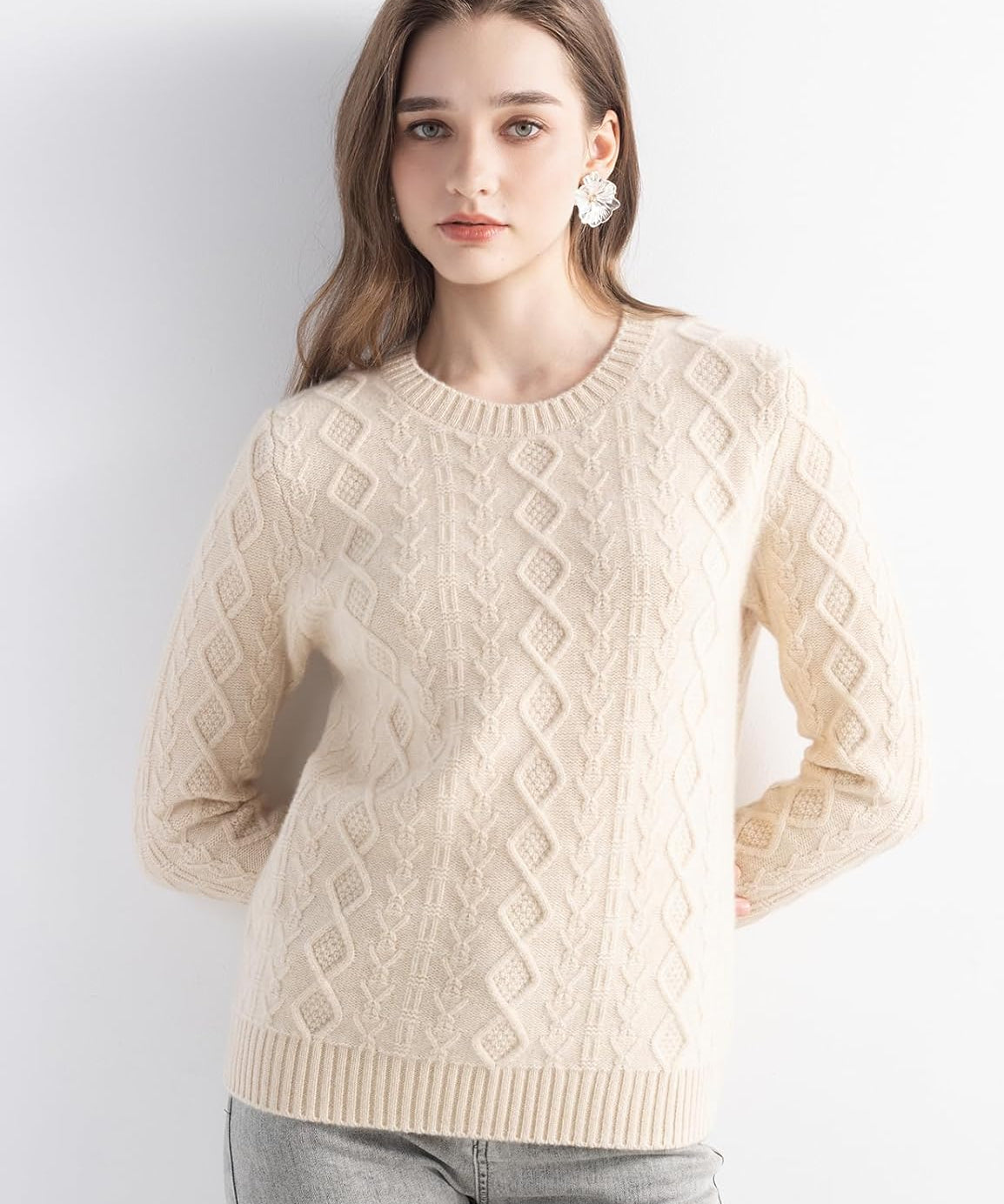 Mongolian Cashmere Cable Knit Sweater