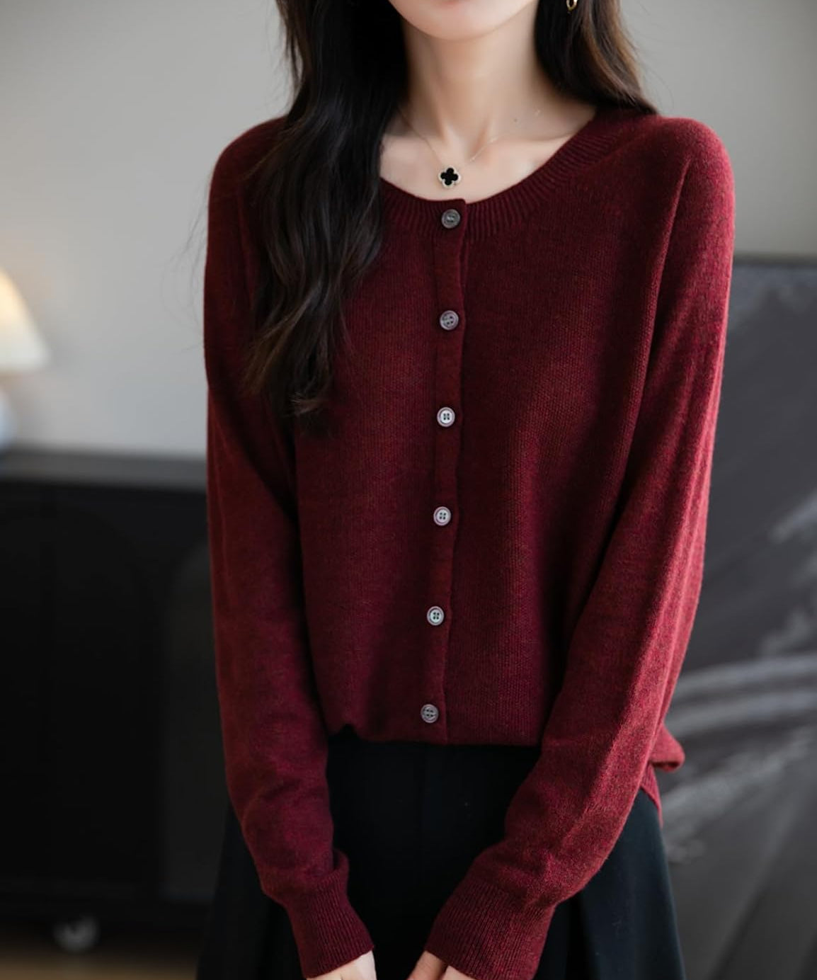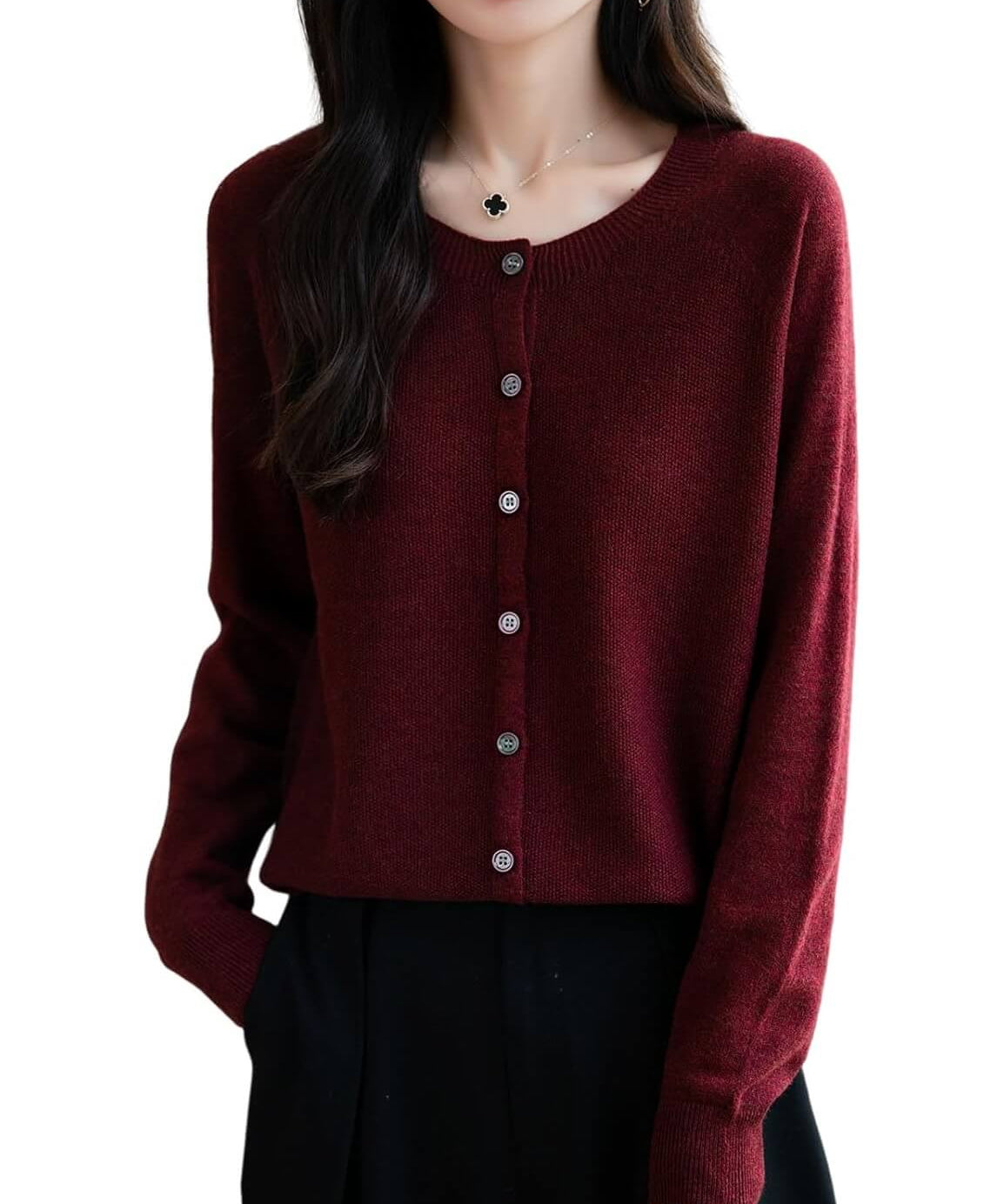 Merino Wool Seamless Crewneck Cardigan