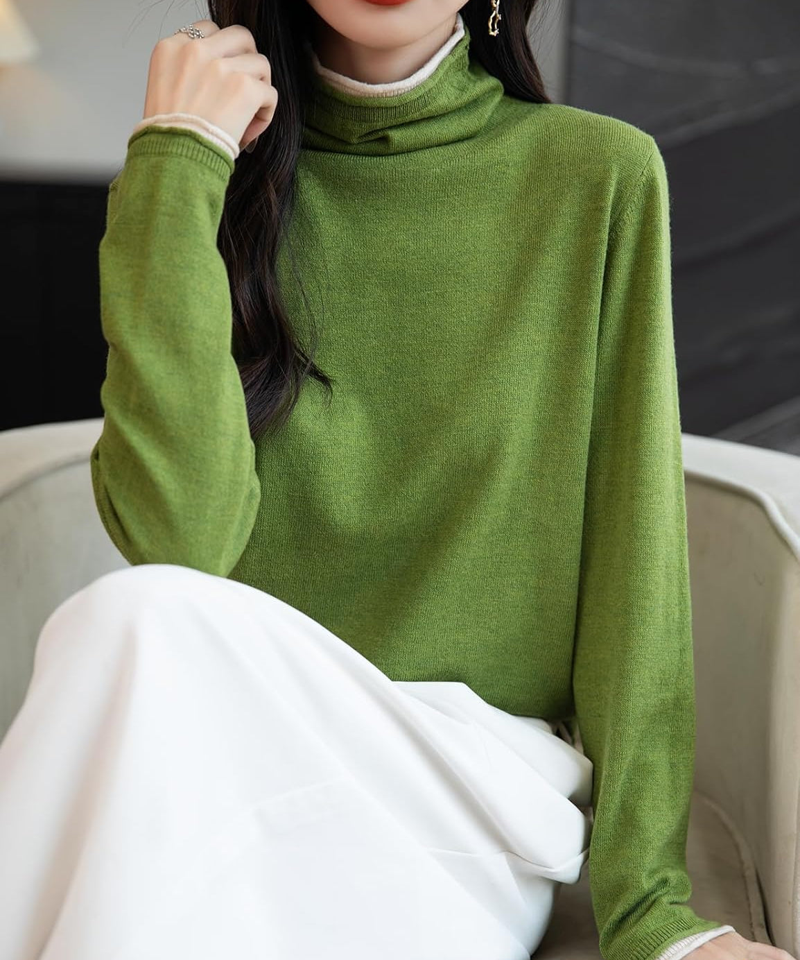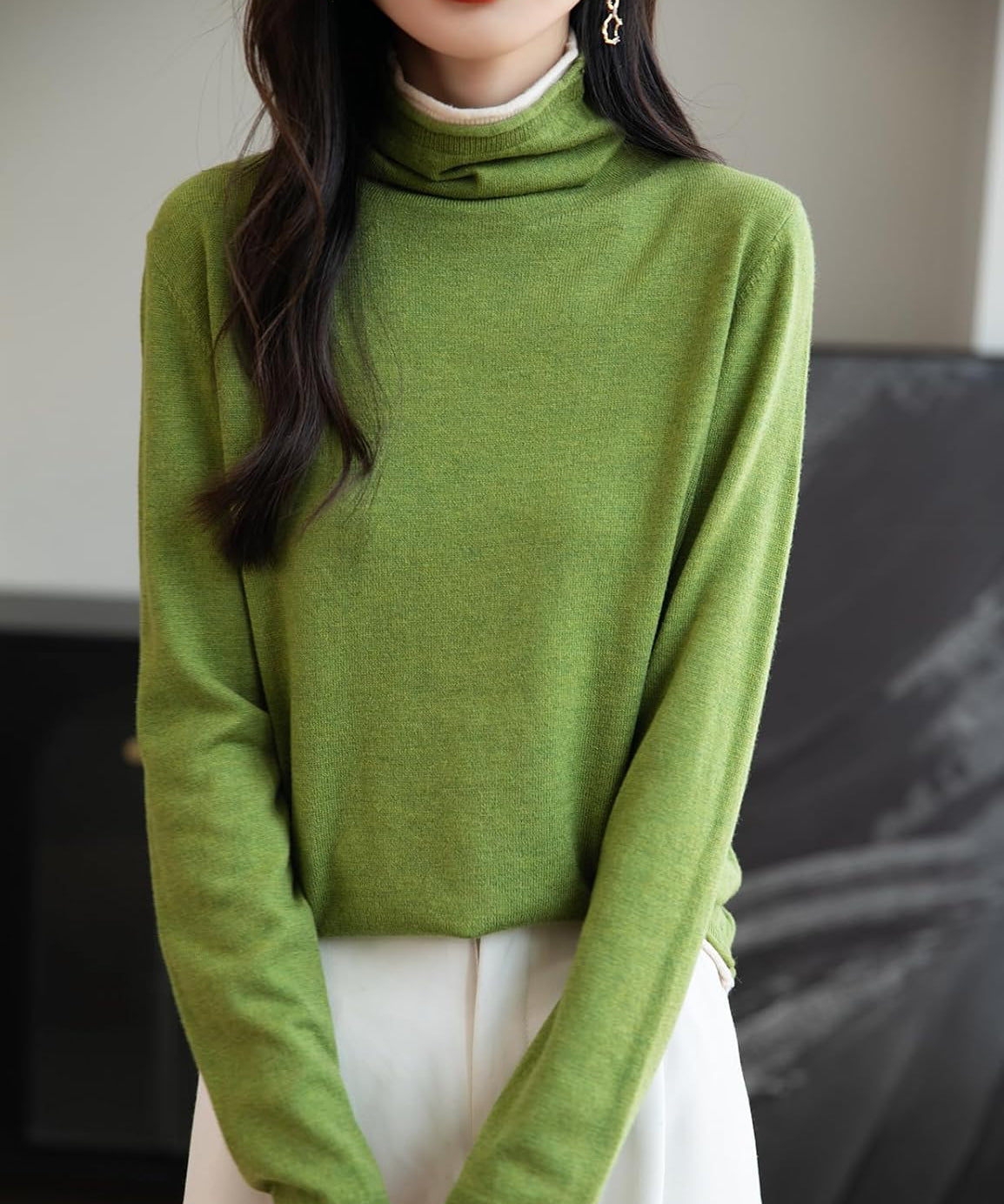 Merino Wool Blend Oversized Turtleneck Sweater