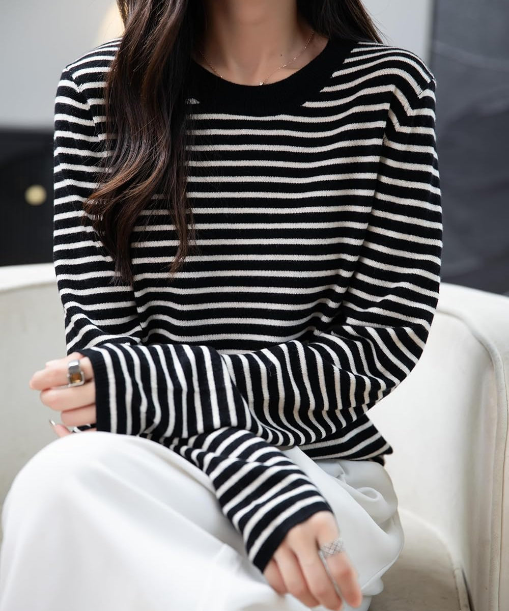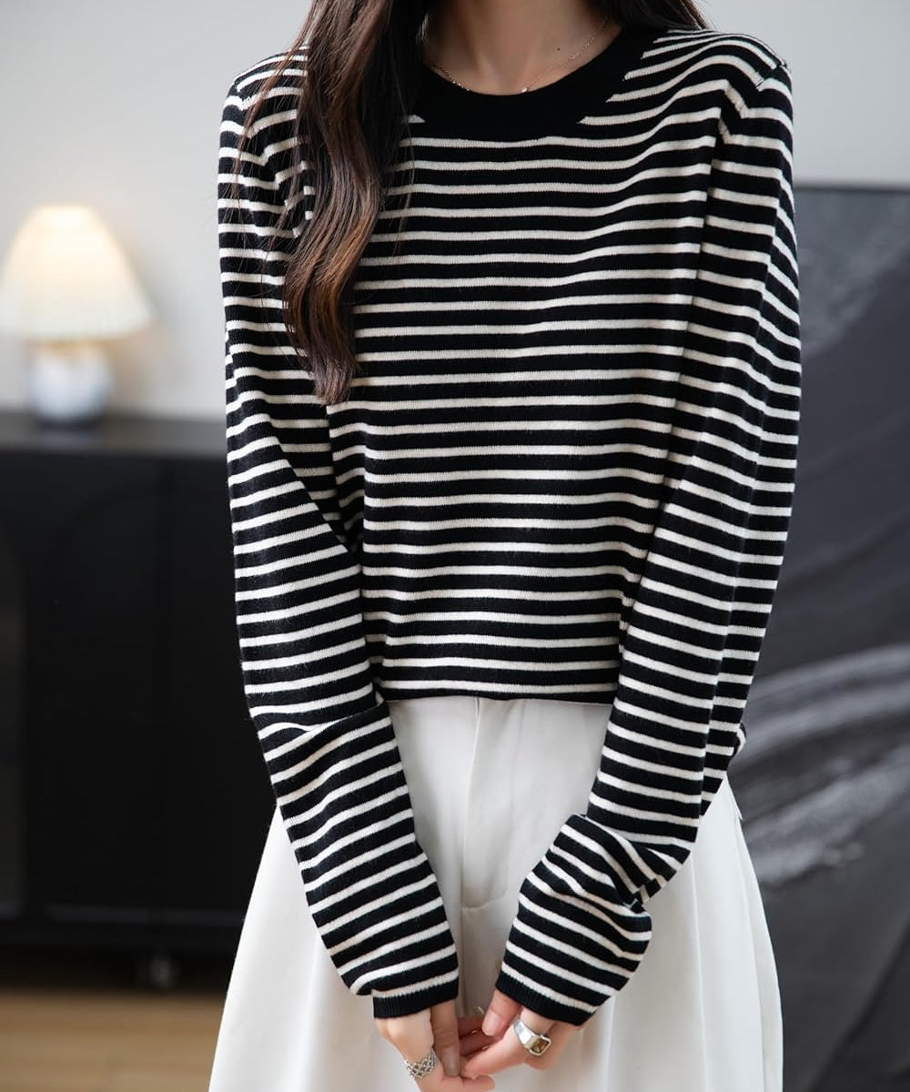 Merino Wool Striped Crewneck Sweater