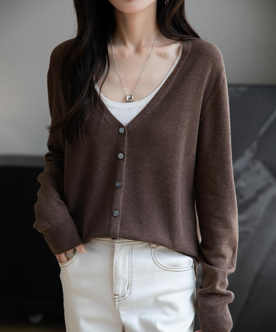 Merino Wool Seamless V-Neck Cardigan