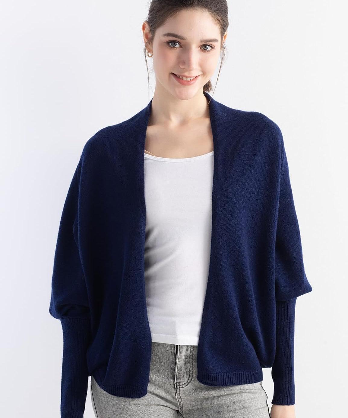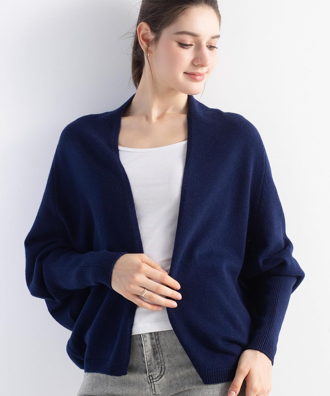 Merino Wool Open Front Batwing Knit Cardigan