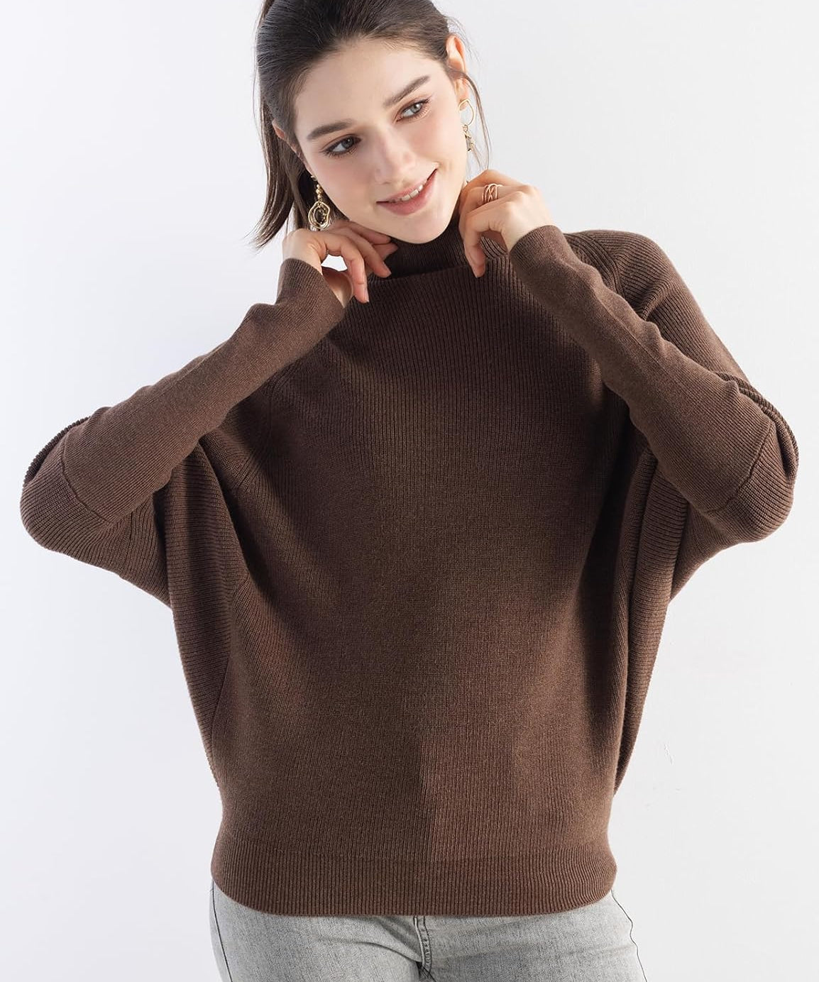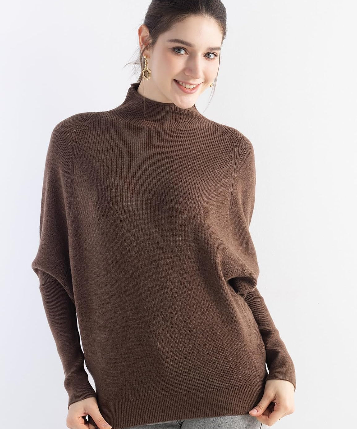 Merino Wool Oversized Mock Neck Batwing Knit Sweater
