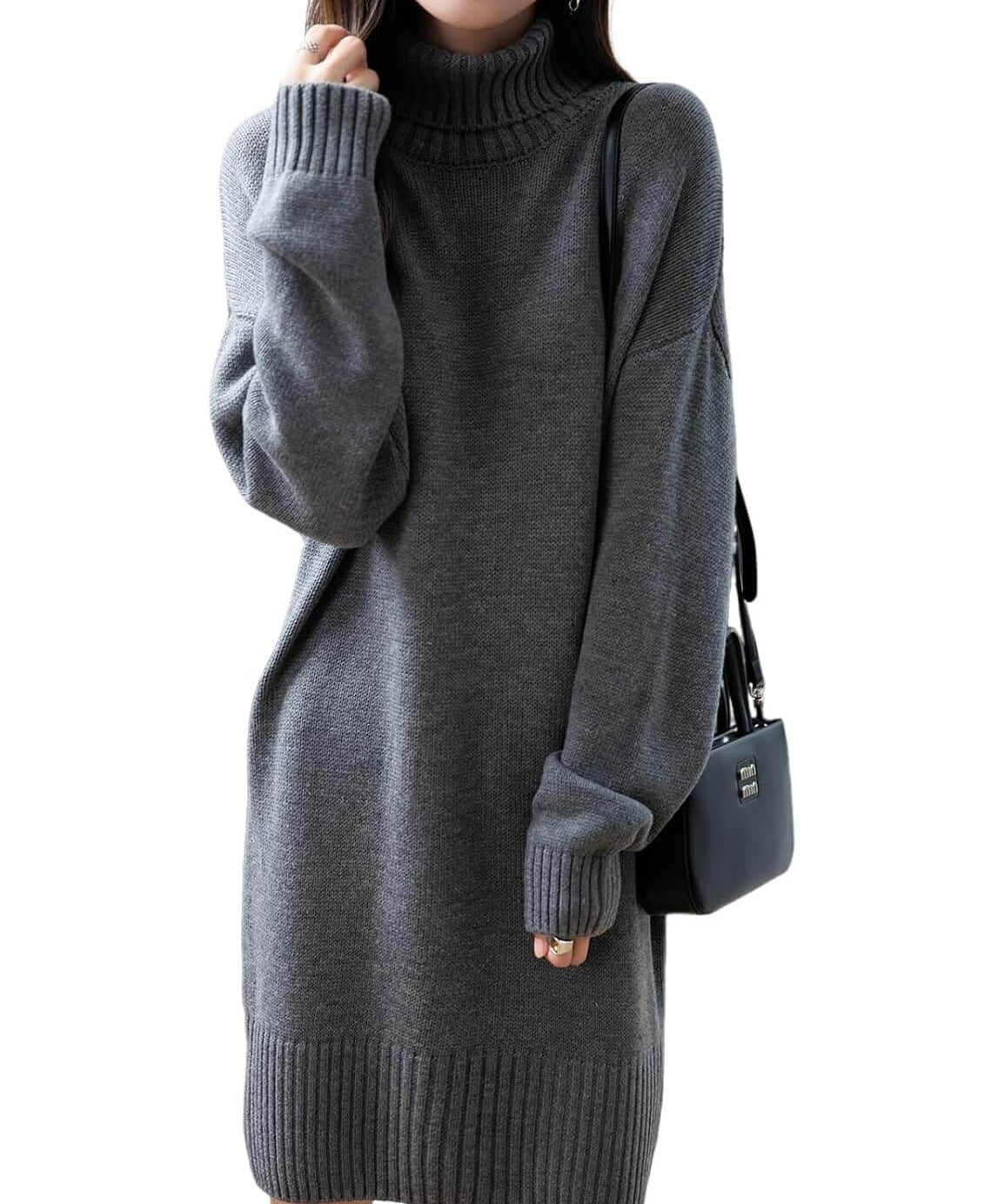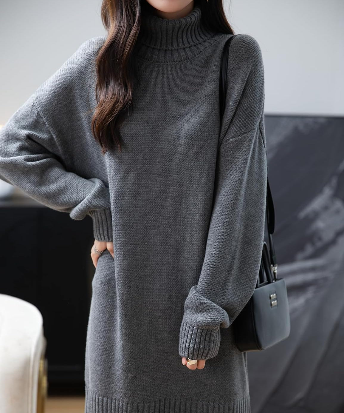 Merino Wool Blend Turtleneck Oversized Sweater Dress