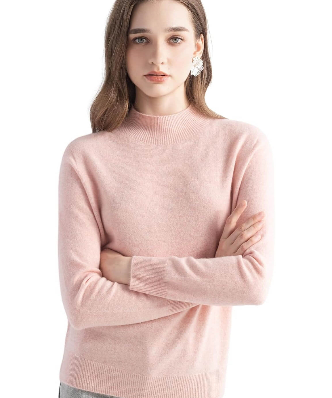 100% Pure Cashmere Mock Neck Pullover Sweater