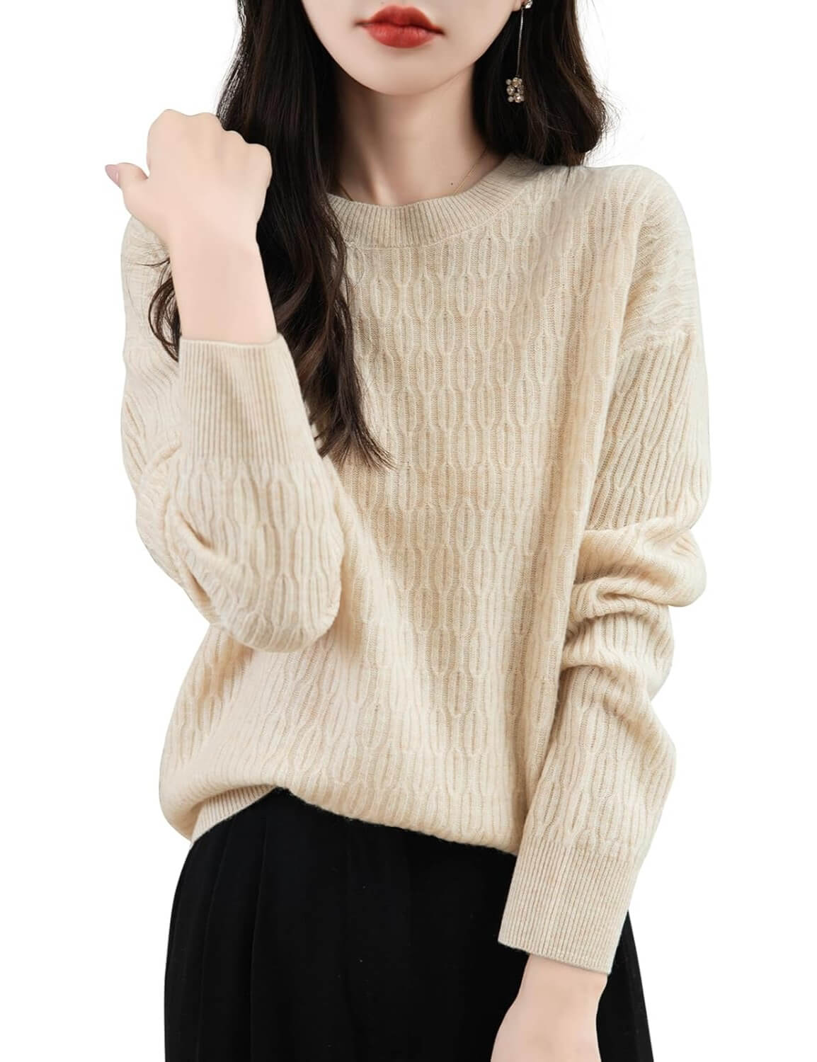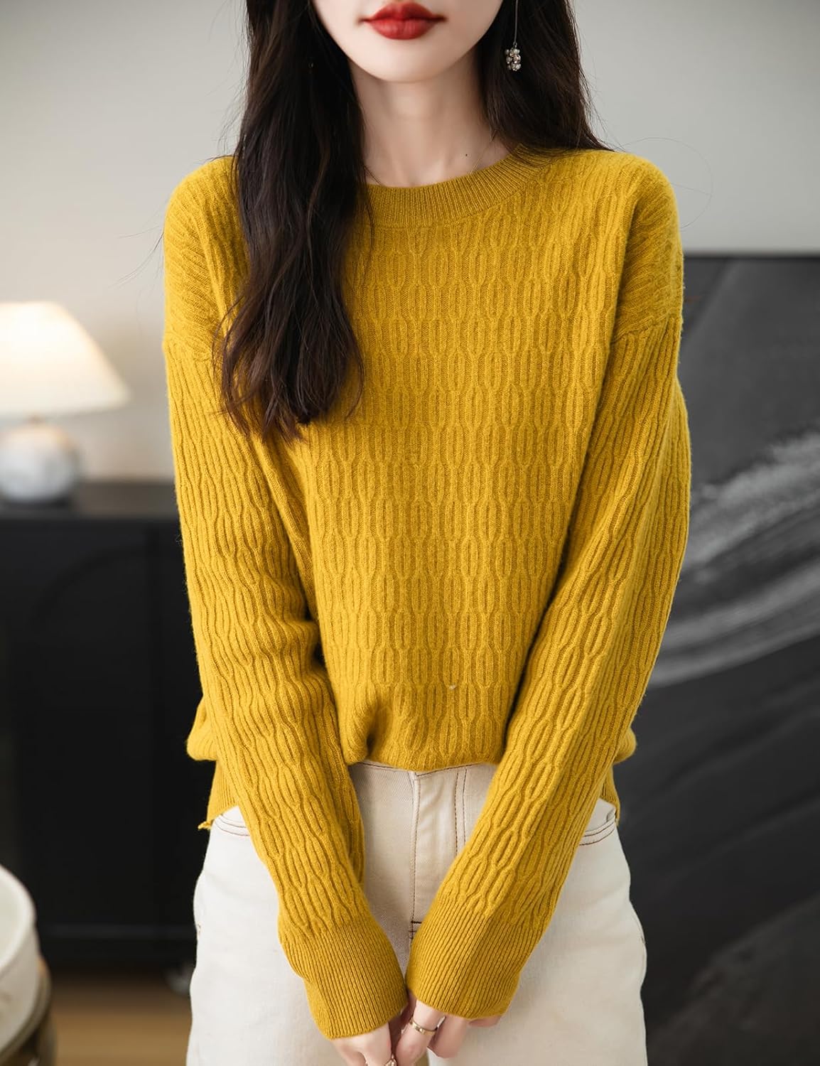 Made of 26Nm/2 pure Merino wool fine yarn, this 100% merino wool sweater has a wool fineness of 17.5-17.9μm, with beautifully soft and fluffy texture, 2-Ply densely-knitted yarn of Long Staple finest fibers to deliver Best Anti-Pilling Performance.