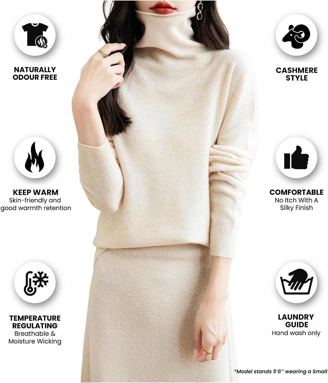 This 100% merino wool sweater uses the latest perfect seamless technology, bulky and annoying stitches at the shoulders, sides and underarms are gone, seams no longer interfere with the natural elasticity of knits, so you can move and stretch more freely.There is no cutting, no seams, soft and comfortable and smooth lines, makes it more comfortable to wear, won't feel tight and rub against the skin when wearing it.