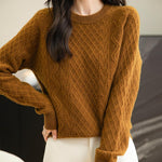 Honestly, clothing on Amazon is hit or miss. You never know what you’re actually going to end up with because the descriptions often exaggerate or are just wrong. Not so with this sweater, it’s everything described and more. The color is a rich rust color, maybe even a dark pumpkin color. And it’s thick and warm because of the wool yarn. Best is that it’s hand washable so care will be easy. Even though it’s wool, it is not scratchy, the yarn is soft and feels good against the skin. I’m glad I stumbled across this item
