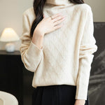 100% Merino Wool Turtleneck Cable Knit Sweater