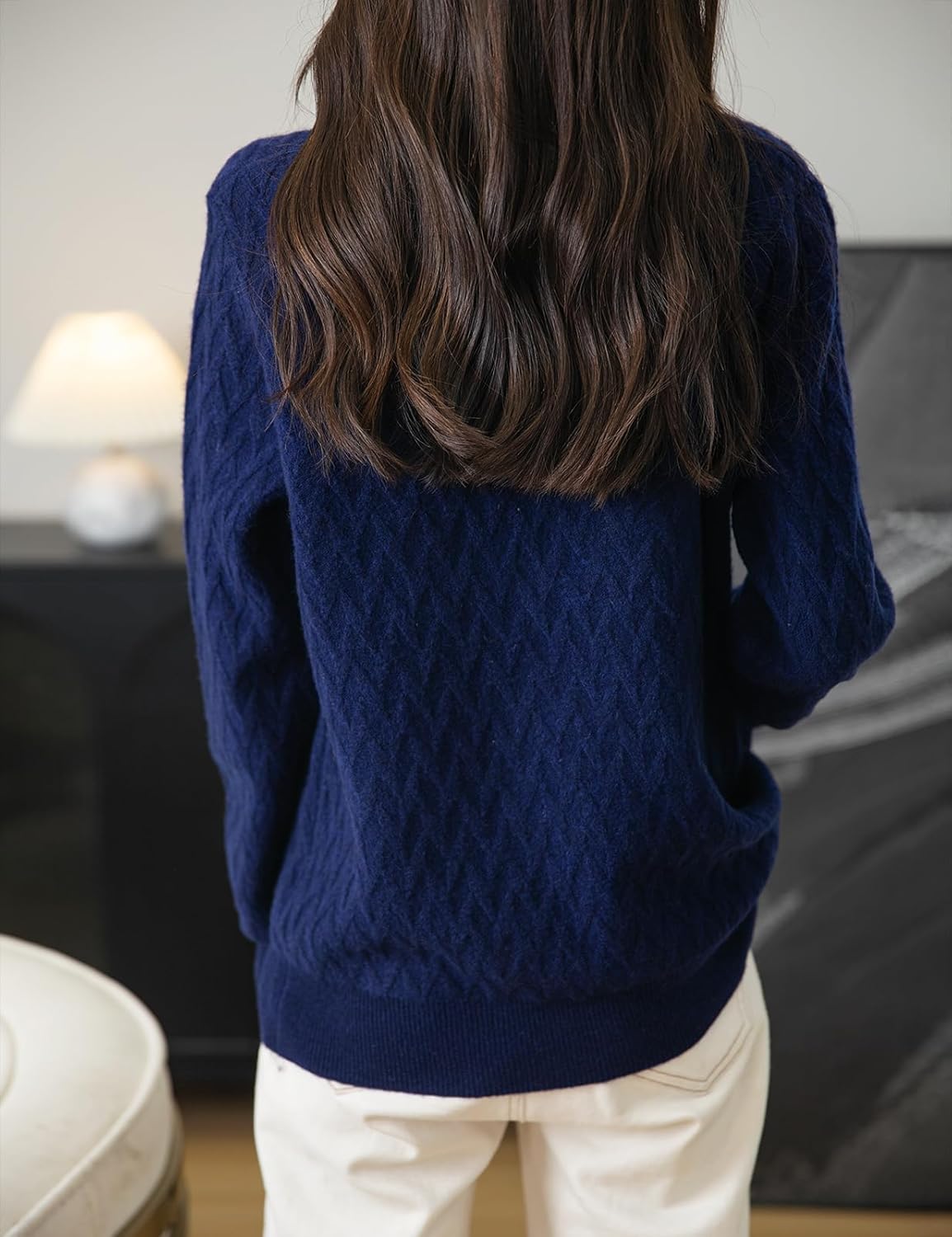 Made of 26Nm/2 pure Merino wool fine yarn, this 100% merino wool sweater has a wool fineness of 17.5-17.9μm, with beautifully soft and fluffy texture, 2-Ply densely-knitted yarn of Long Staple finest fibers to deliver Best Anti-Pilling Performance.
