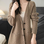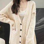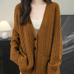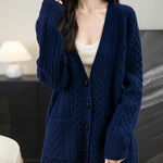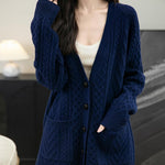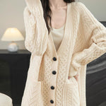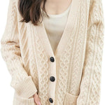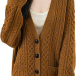 - Features: Fine 5 gauge fabric, thick. Normal fit, solid color, v neck, long sleeves, classic cable stitch design, ribbed cuffs. High elasticity, casual style. Lightweight, warm, soft, very comfortable to wear. This merino wool cardiagn sweater features a unique texture pattern that adds visual interest and charm to your winter wardrobe.