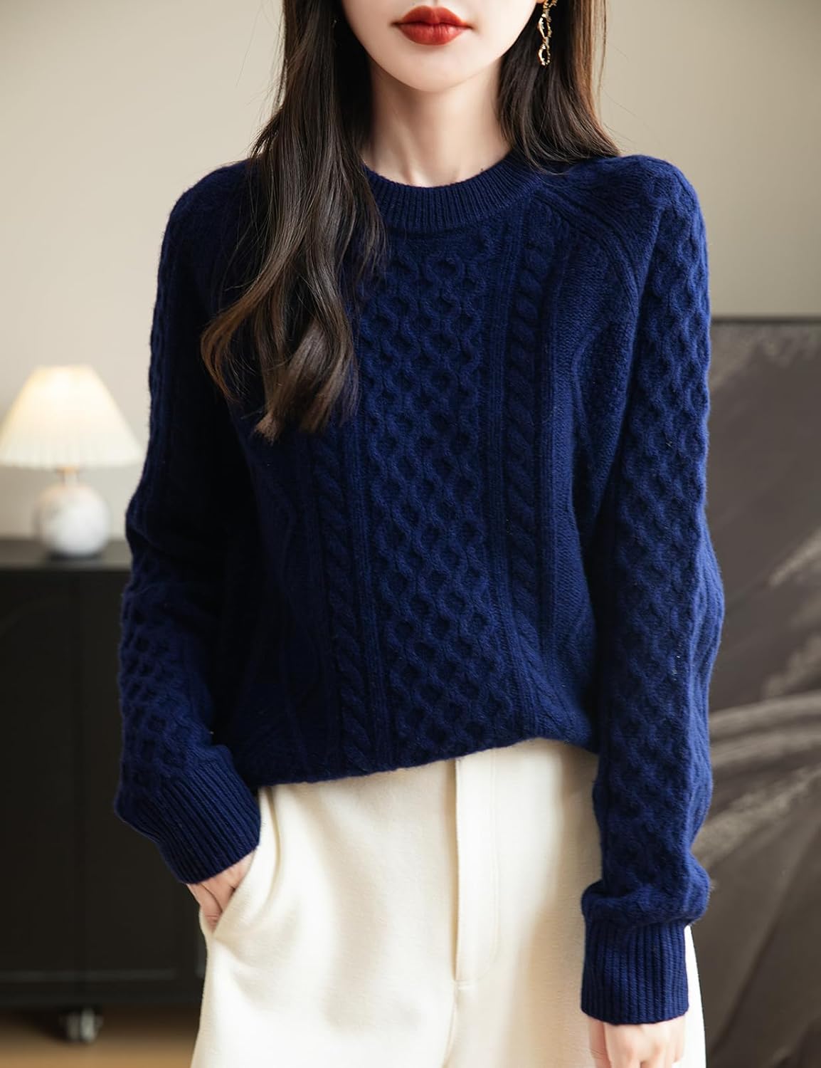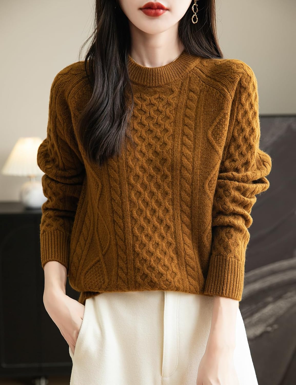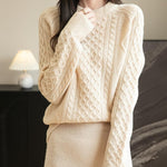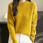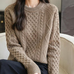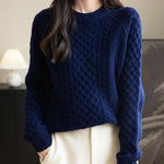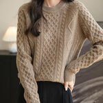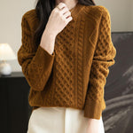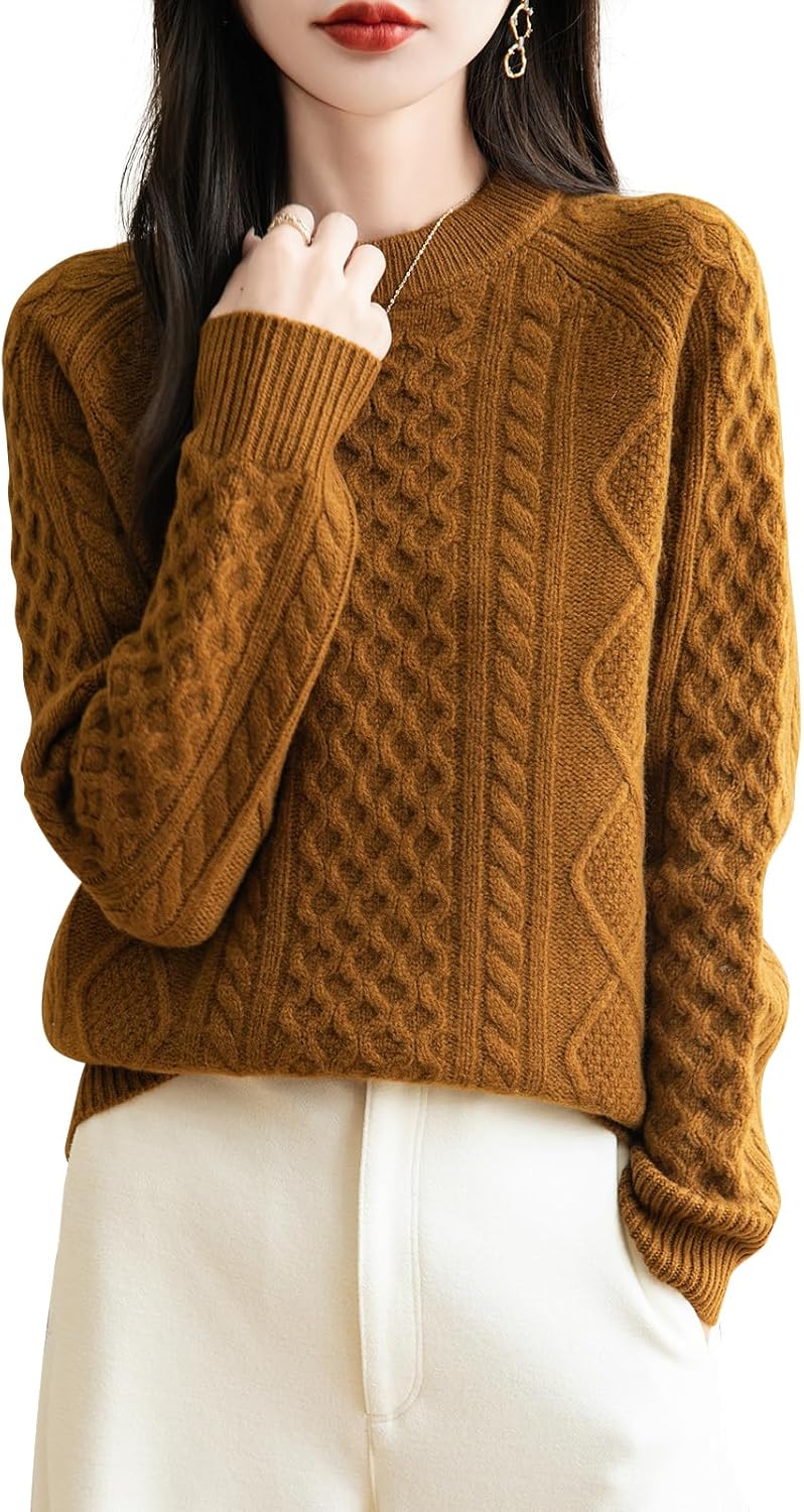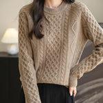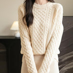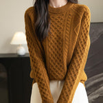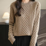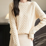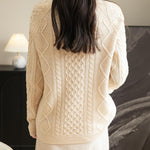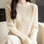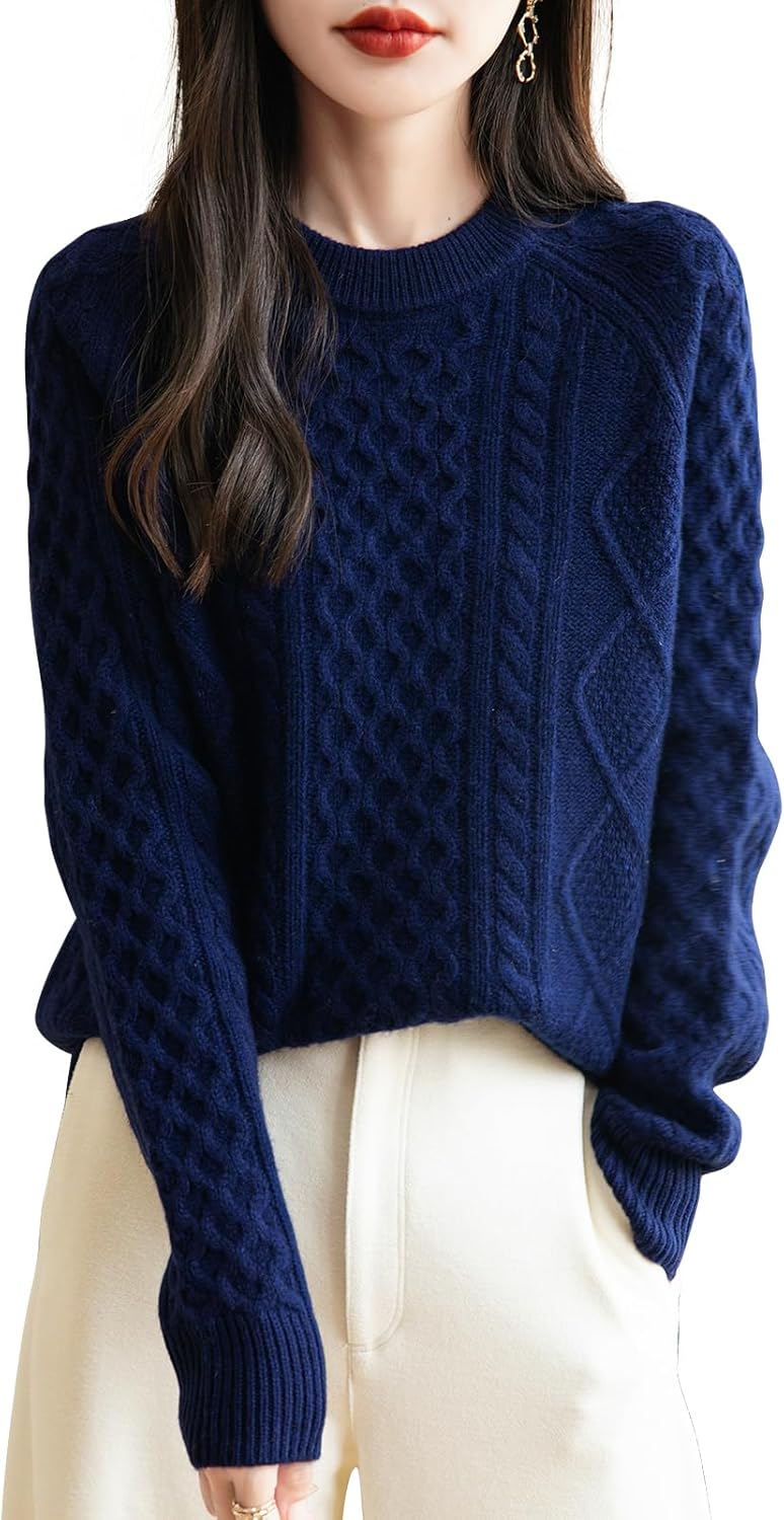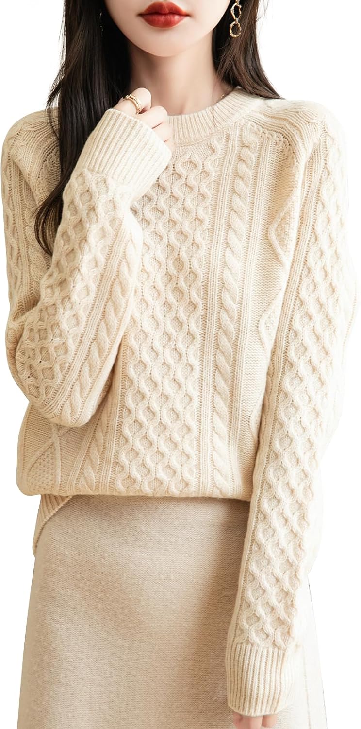 100% Merino Wool Vintage Crewneck Cable Knit Sweater