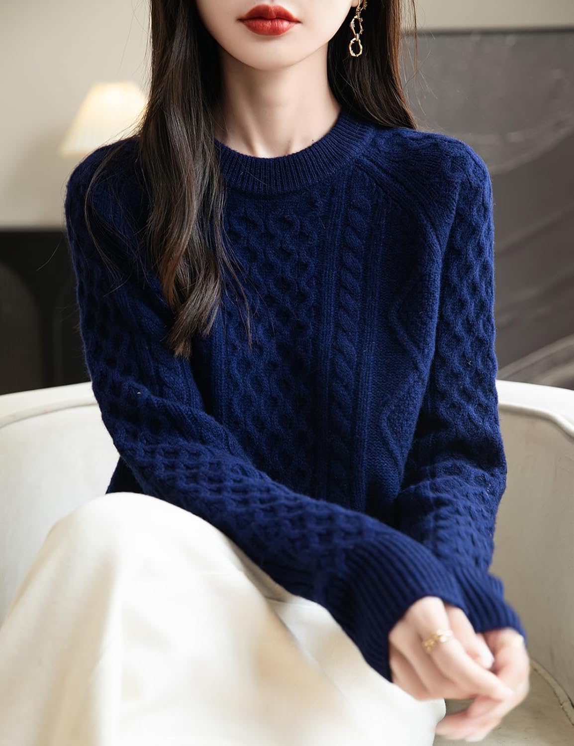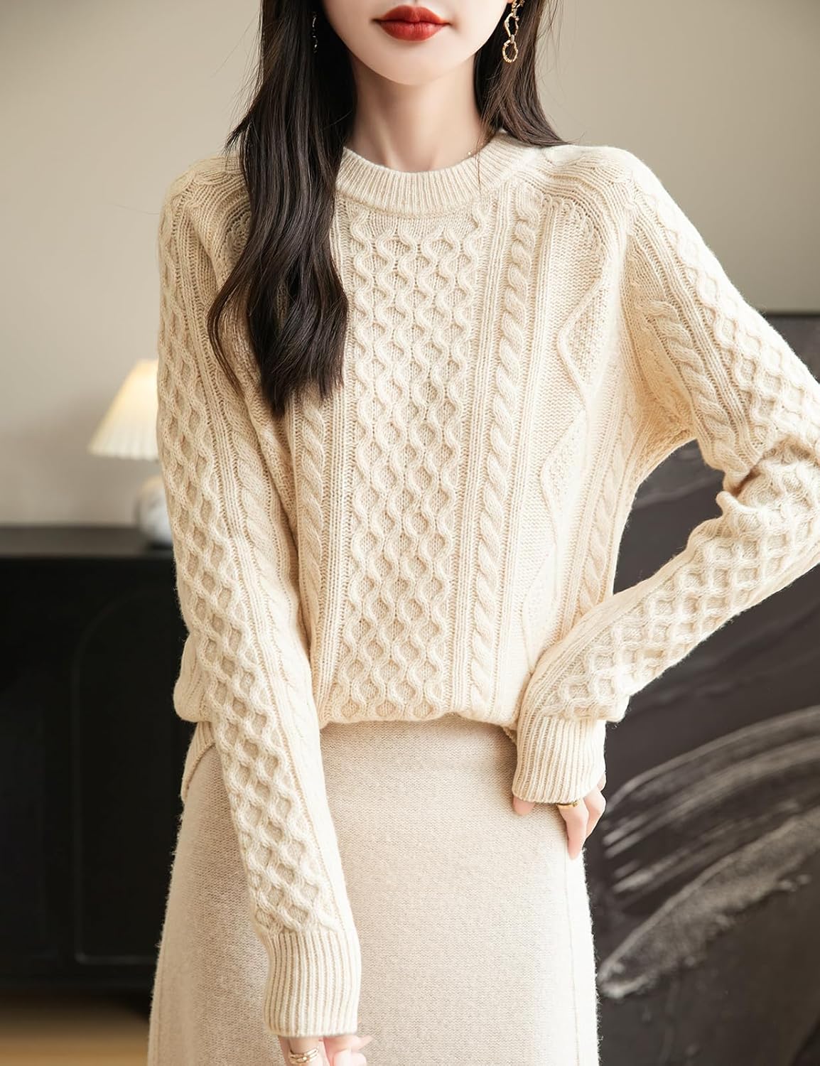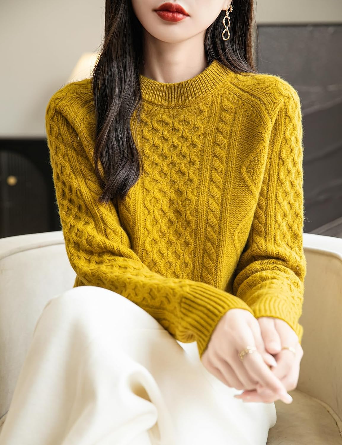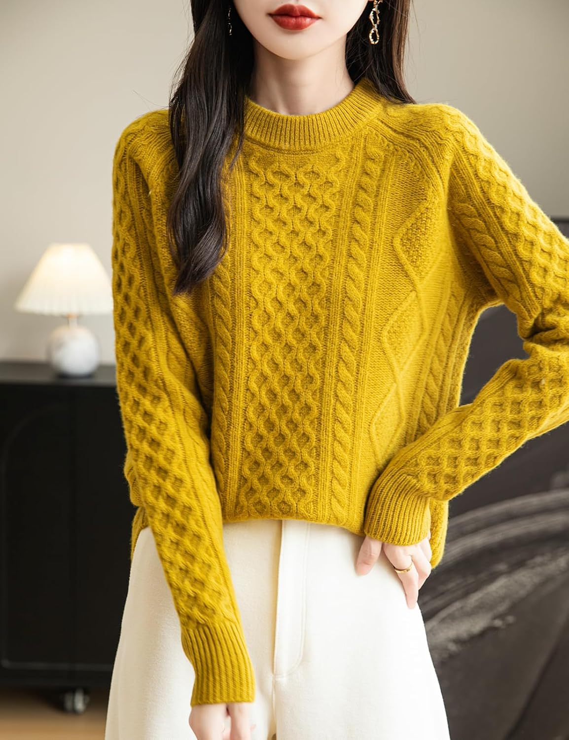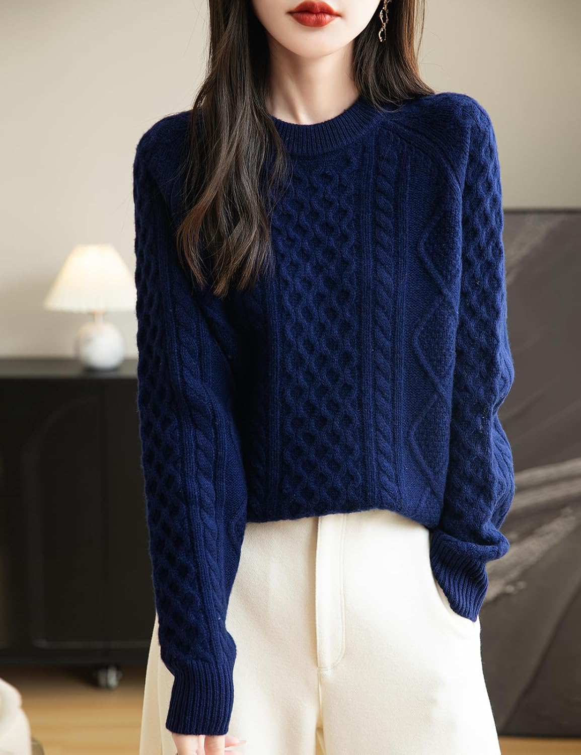 100% Merino Wool Vintage Crewneck Cable Knit Sweater