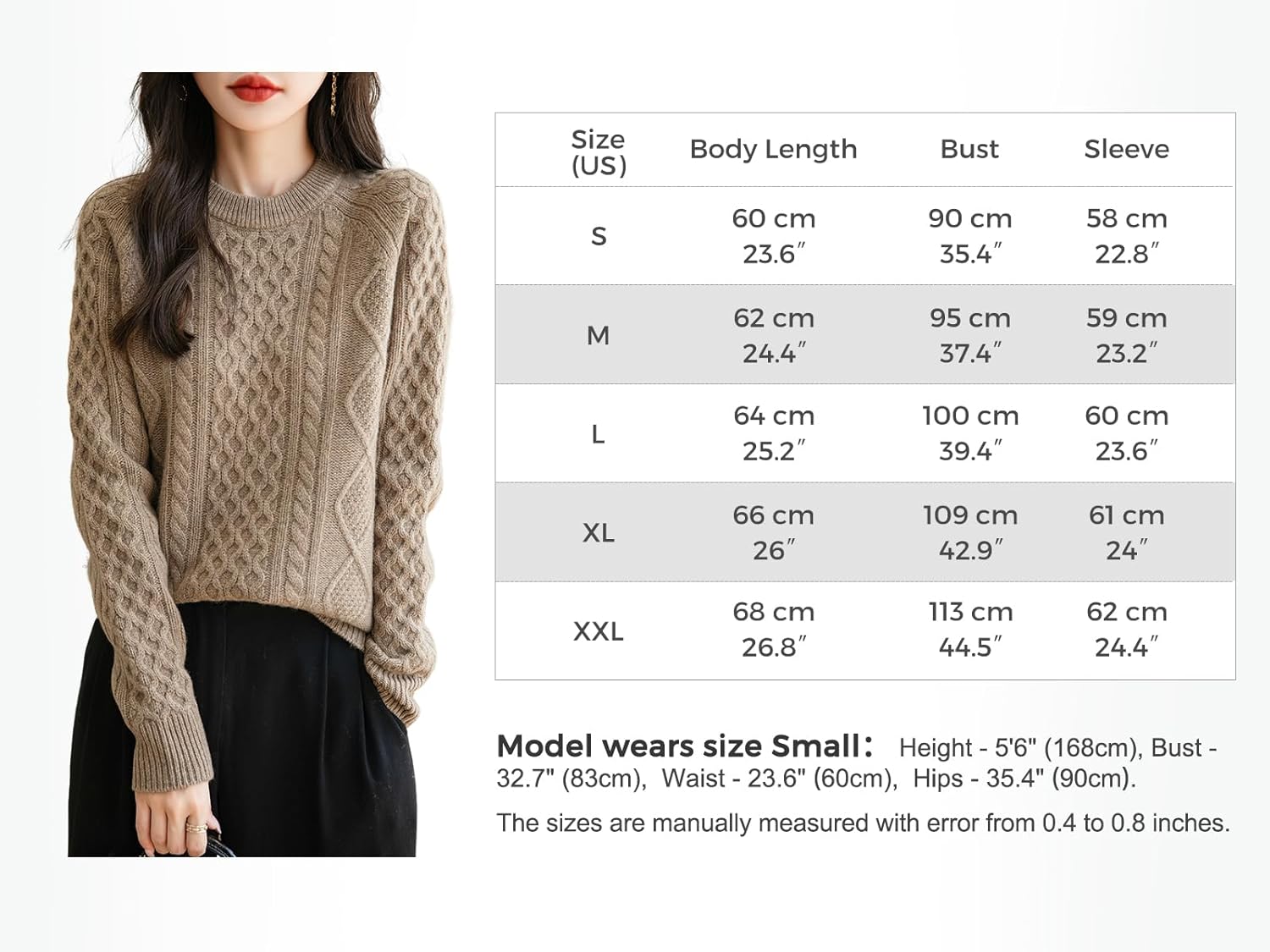 This 100% merino wool sweater uses the latest perfect seamless technology, bulky and annoying stitches at the shoulders, sides and underarms are gone, seams no longer interfere with the natural elasticity of knits, so you can move and stretch more freely.There is no cutting, no seams, soft and comfortable and smooth lines, makes it more comfortable to wear, won't feel tight and rub against the skin when wearing it.
