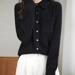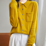 - Features: Fine 12 gauge fabric, Lightweight. Normal fit, long sleeve Polo neck design. High elasticity, casual style. Lightweight, Warm and soft. This pure merino wool cardigan sweater for women is a must-have for every fashion women to create a casual and trendy look.