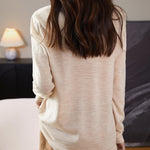 Made of 26Nm/2 pure Merino wool fine yarn, this 100% merino wool sweater has a wool fineness of 17.5-17.9μm, with beautifully soft and fluffy texture, 2-Ply densely-knitted yarn of Long Staple finest fibers to deliver Best Anti-Pilling Performance.