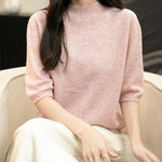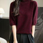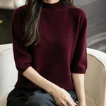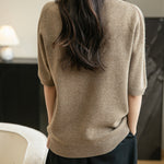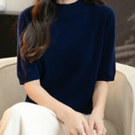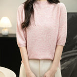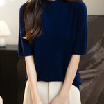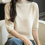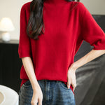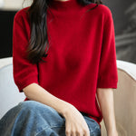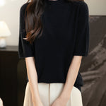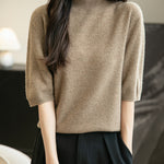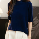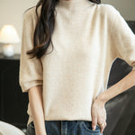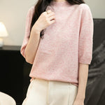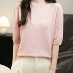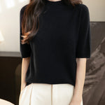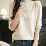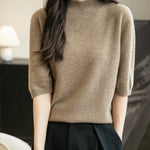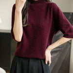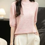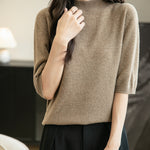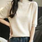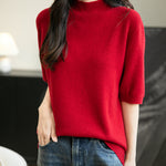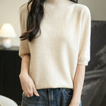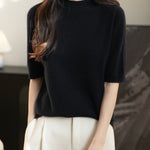 100% Merino Wool Short Sleeve Mockneck Seamless Sweater