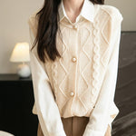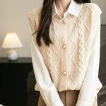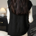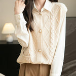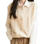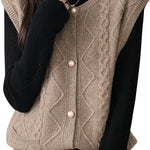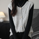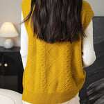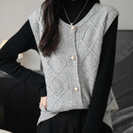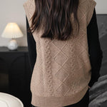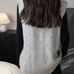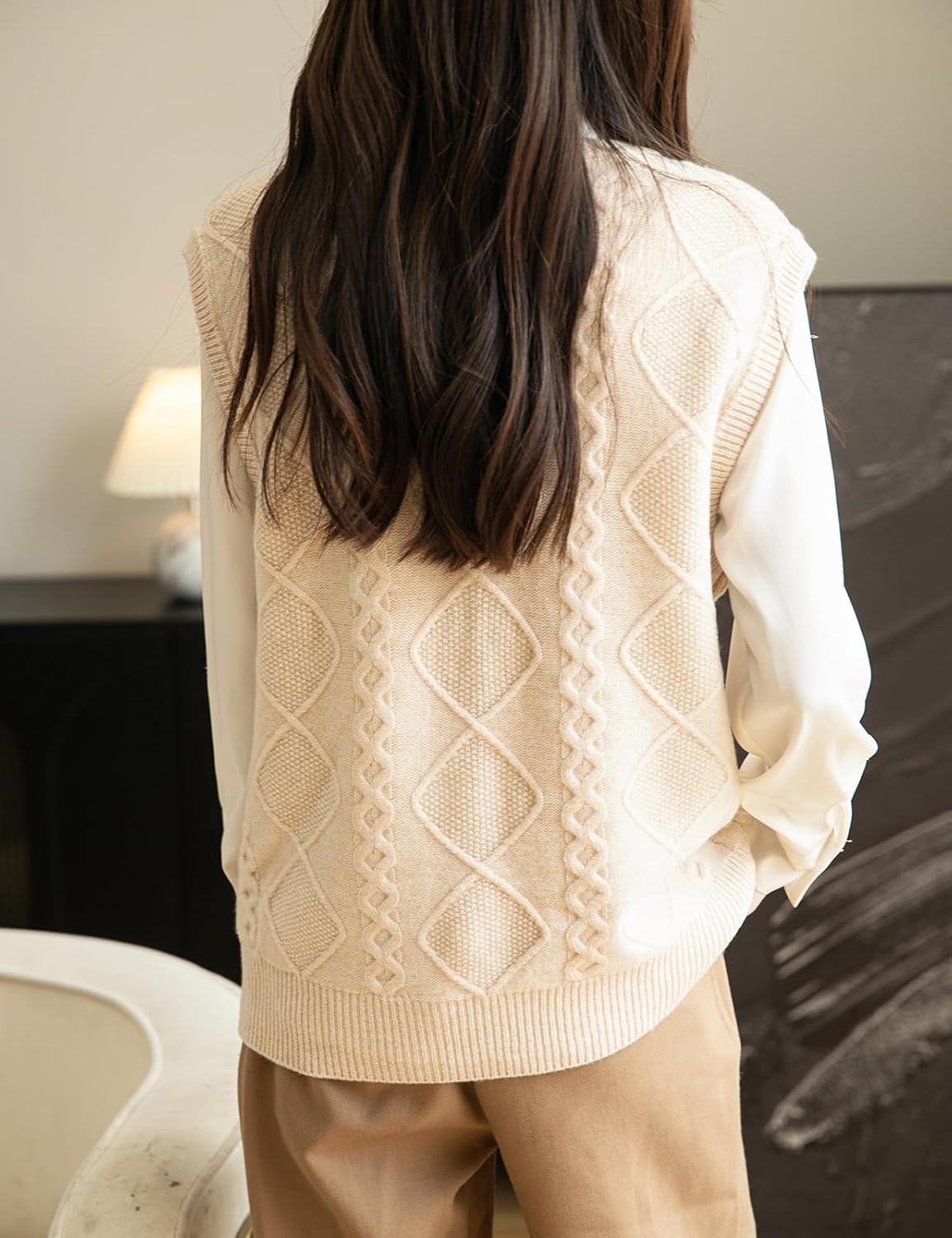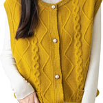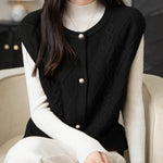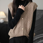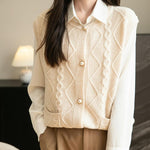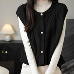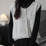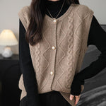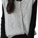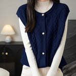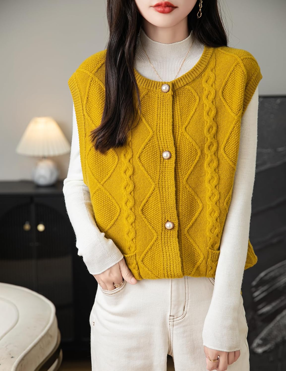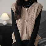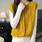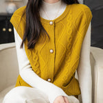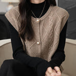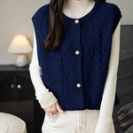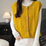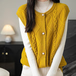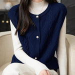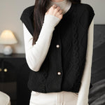 100% Merino Wool Crewneck Button Cable Knit Sweater Vest