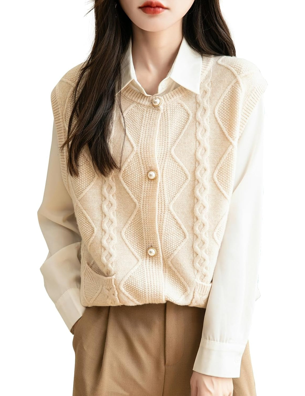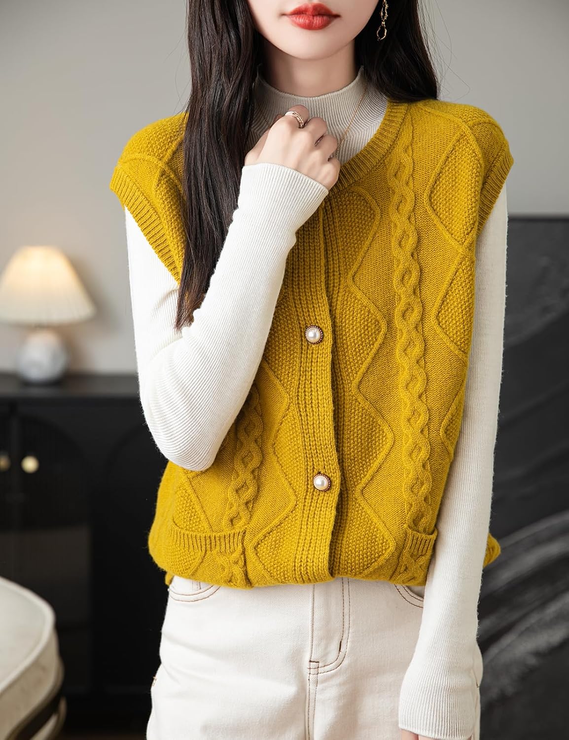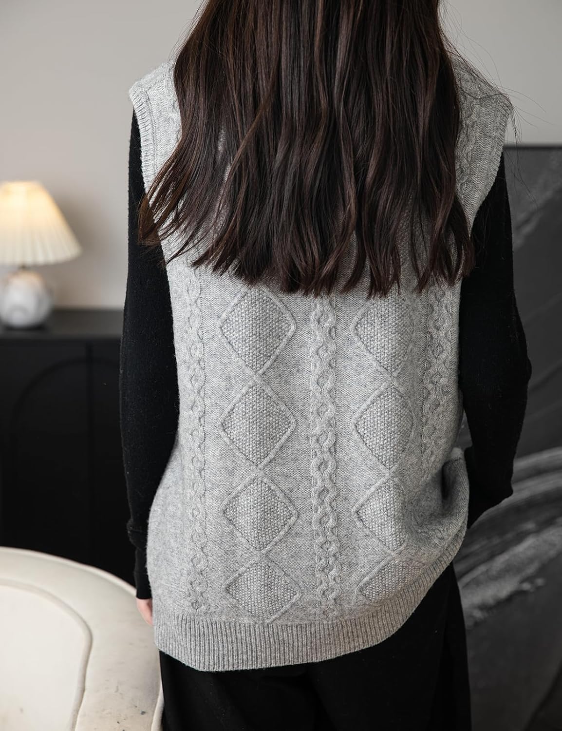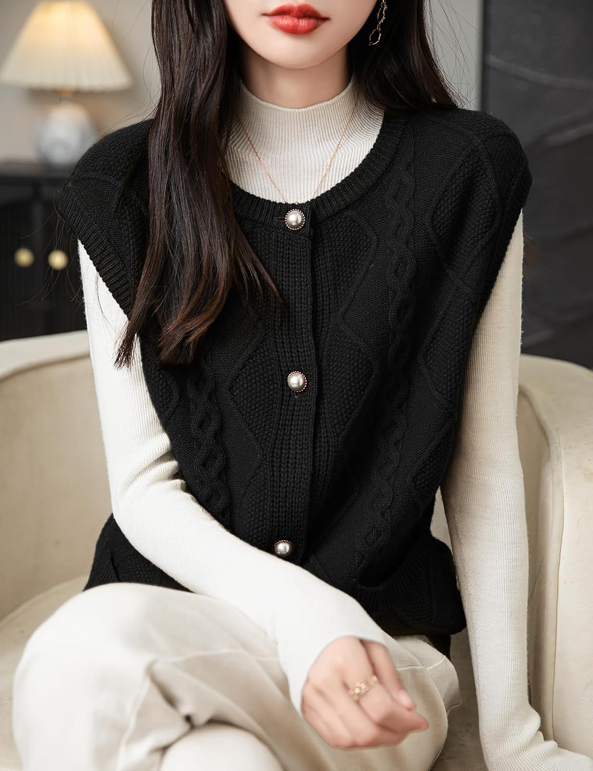 This cable-knit vest is super luxurious. The merino wool is incredibly soft, warm, and hypoallergenic if you're sensitive to the dyes and chemicals used in synthetic fibers. The knitted pattern is beautiful, the color is elegant, and there are many little touches like the buttons.