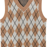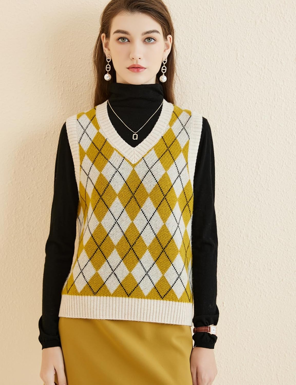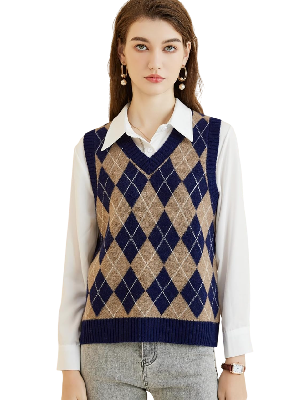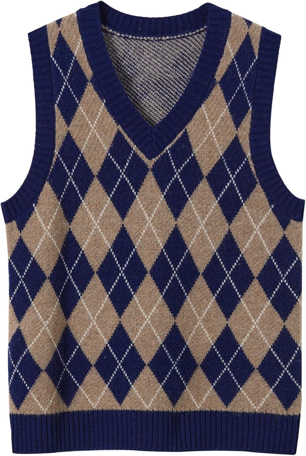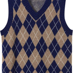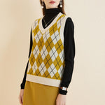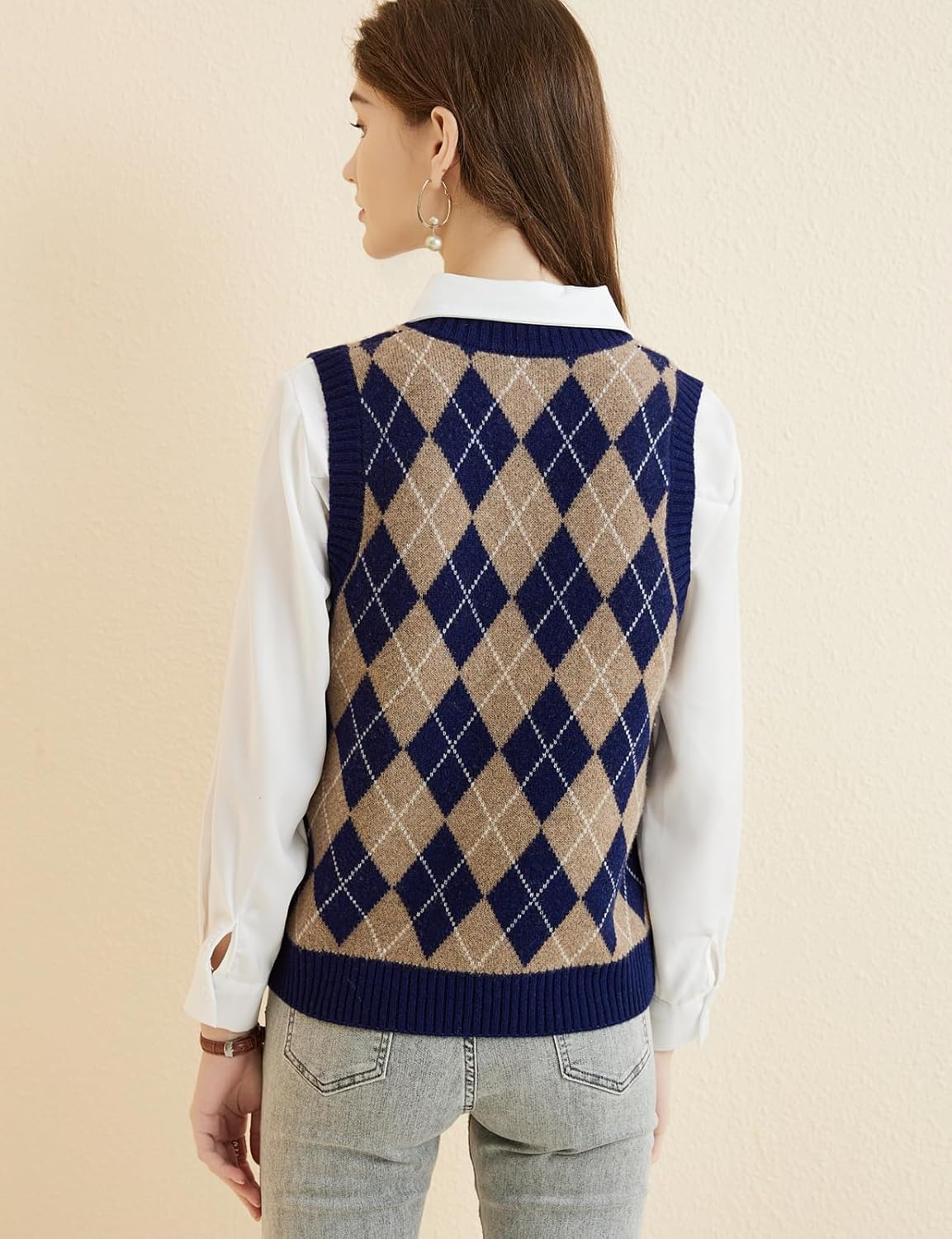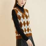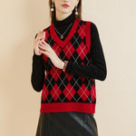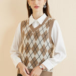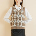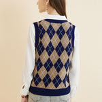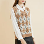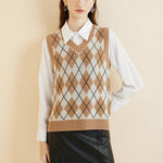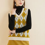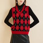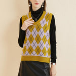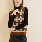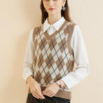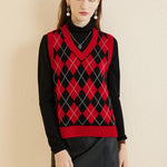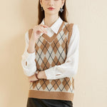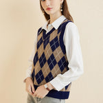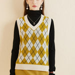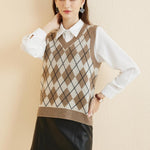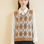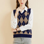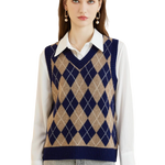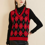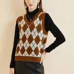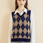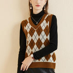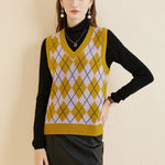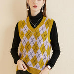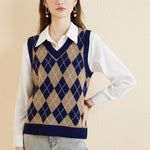 100% Merino Wool Diamond Lattice V-Neck Sweater Vest