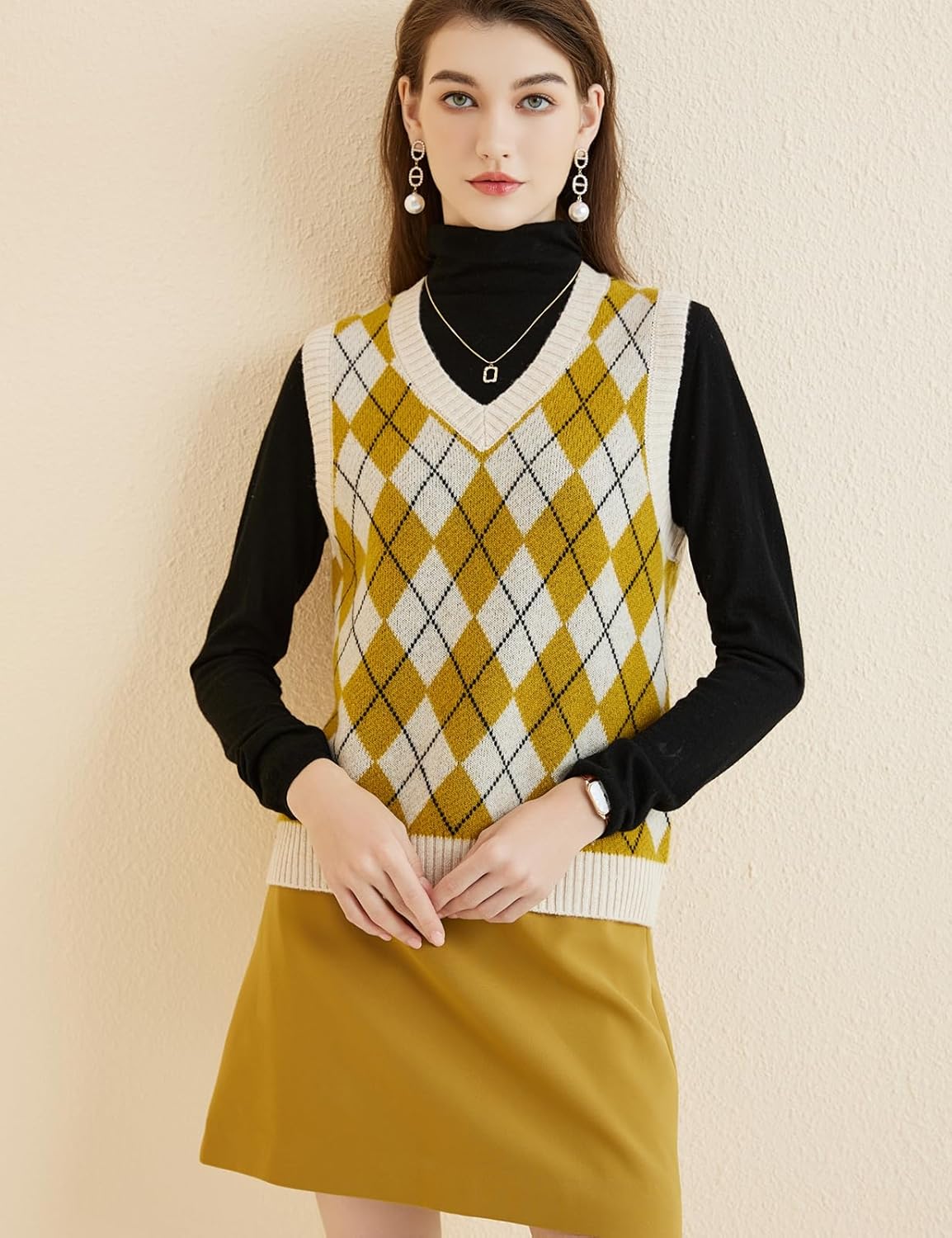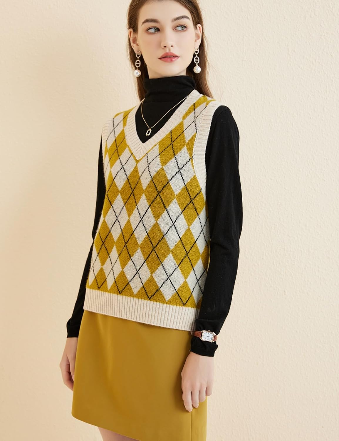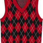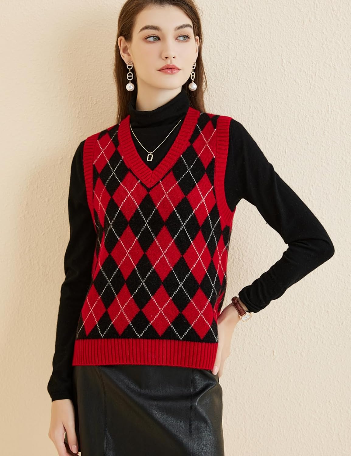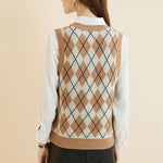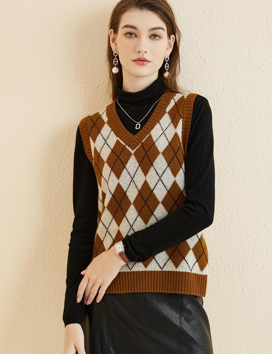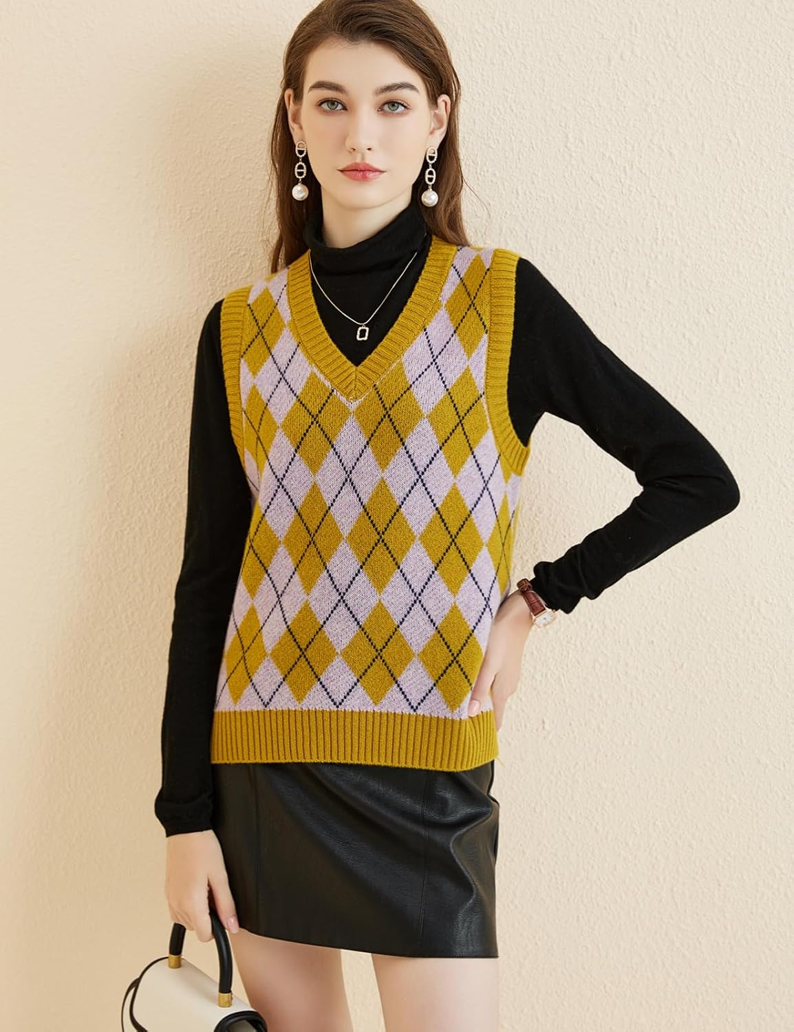 100% Merino Wool Diamond Lattice V-Neck Sweater Vest