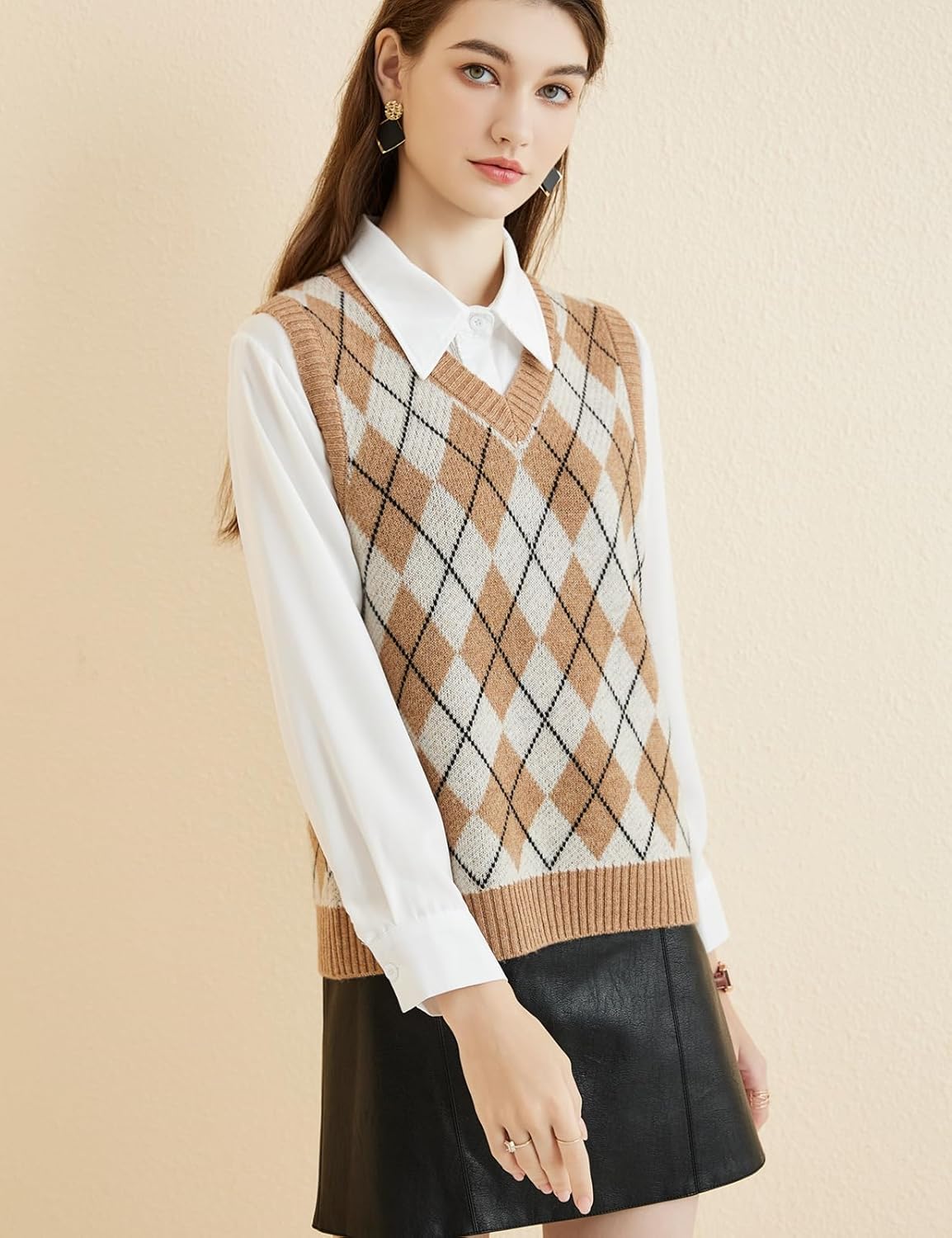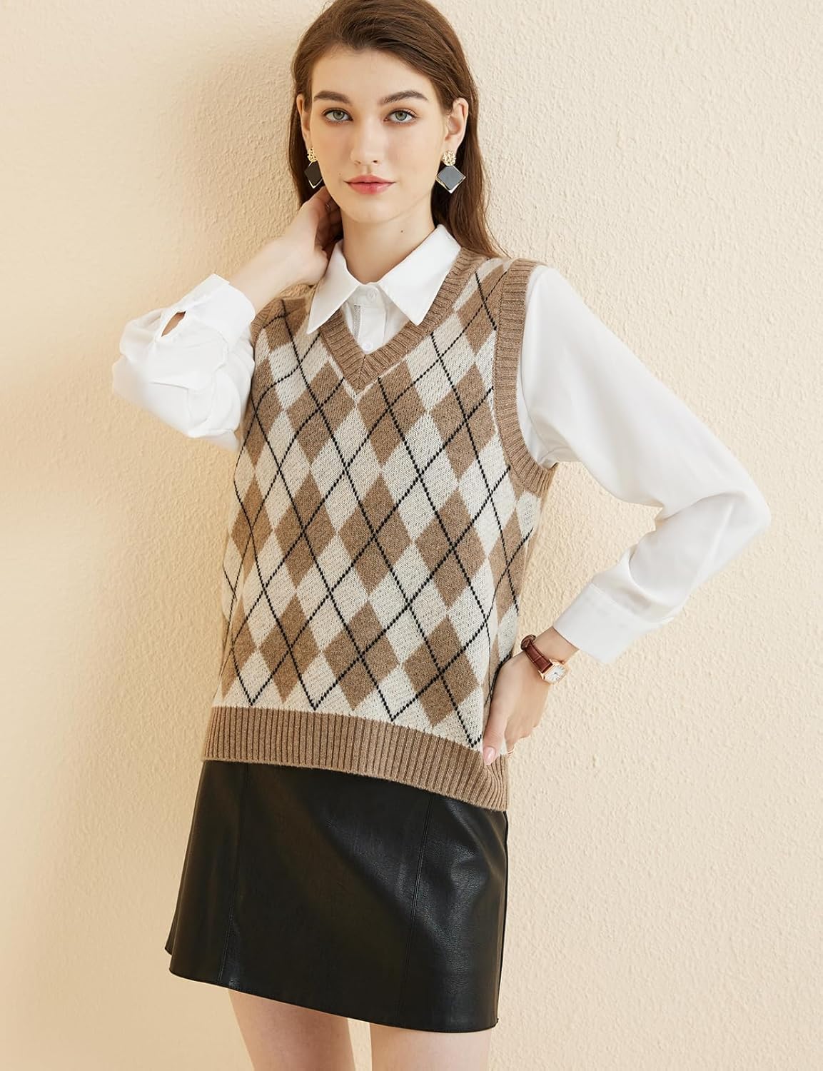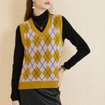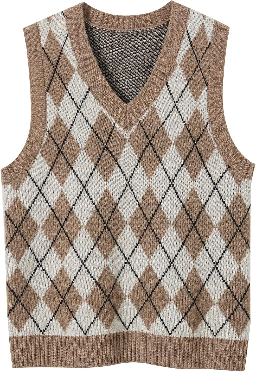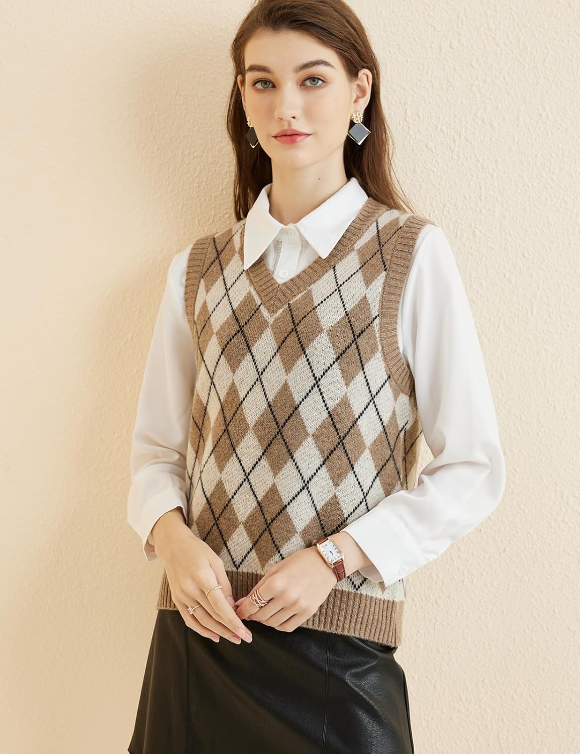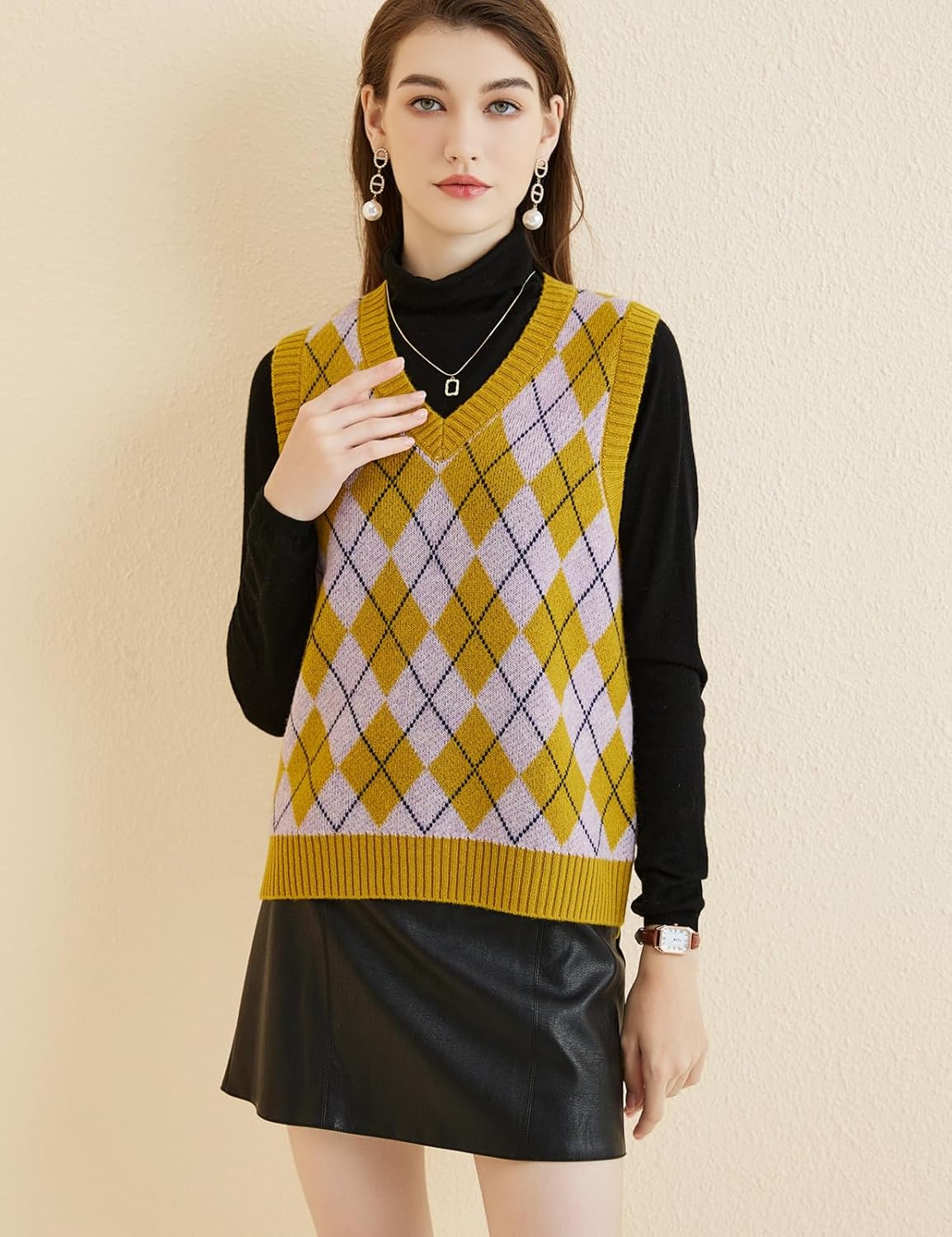 100% Merino Wool Diamond Lattice V-Neck Sweater Vest