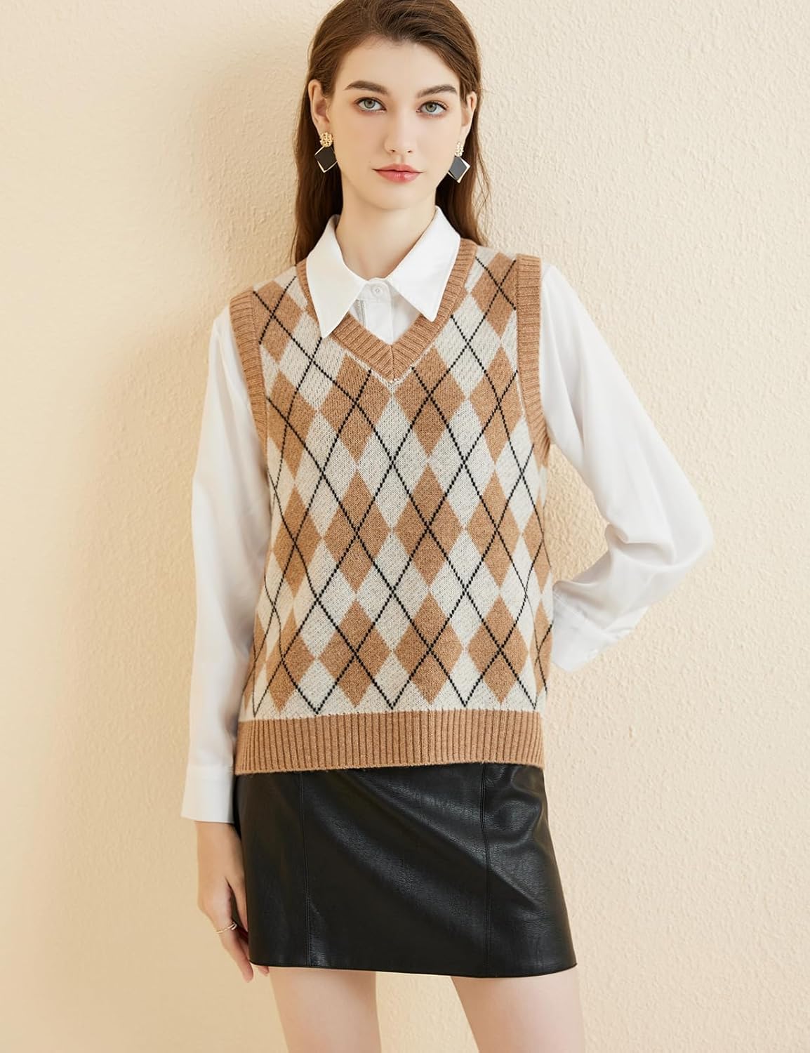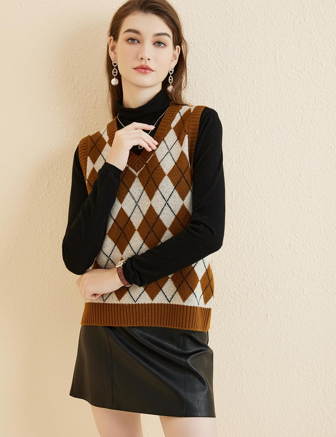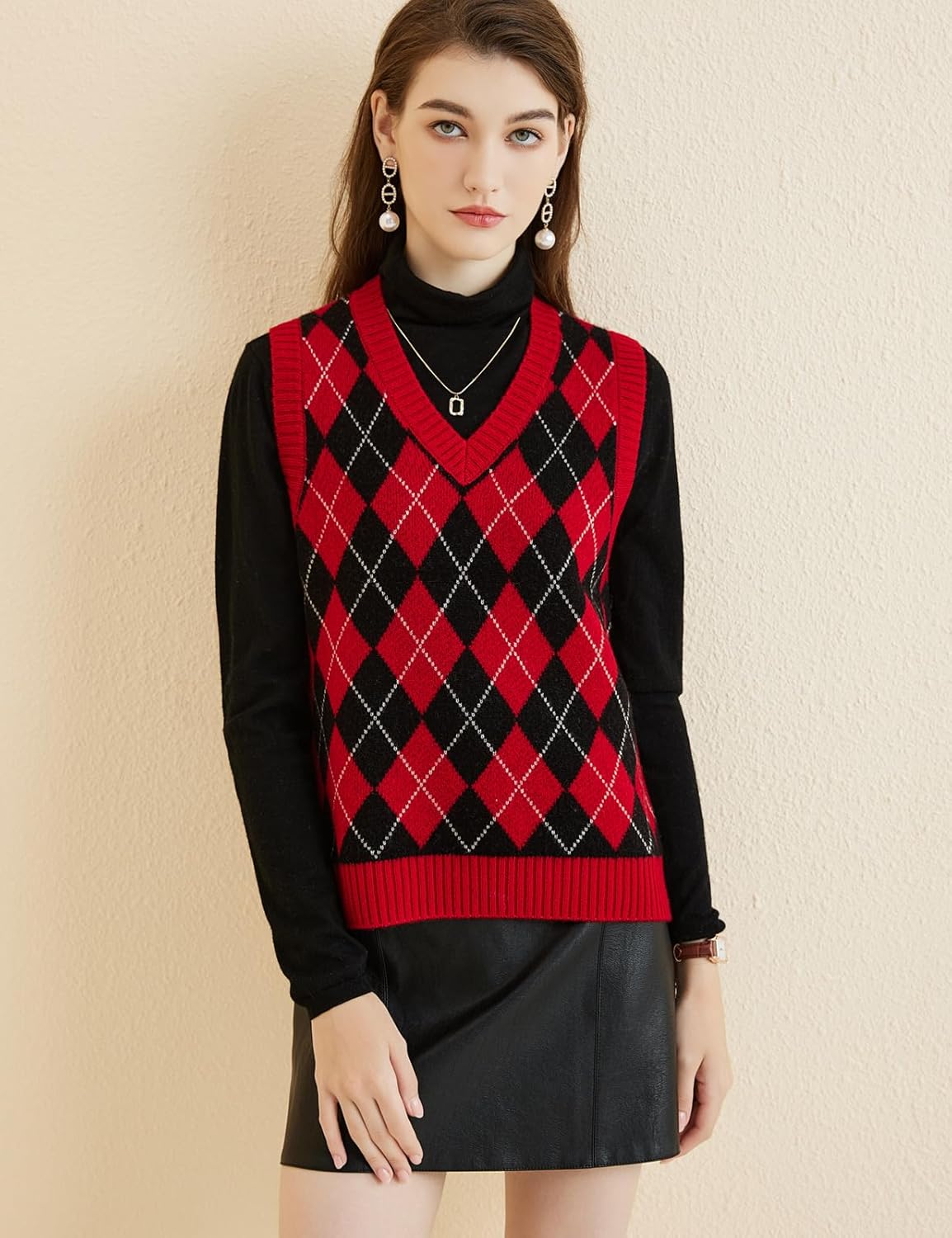 This is a nice, soft sweater vest. The pattern looks nice. Not sure what makes this a women’s sweater vest. The style and patttern are more like many traditionally men’s sweater vests.