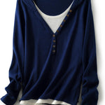 Merino Wool Blend Color Block Fake Two-Piece Knit Hoodie
