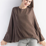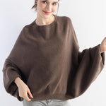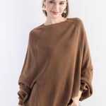Merino Wool Blend Oversized Crewneck Batwing Sweater