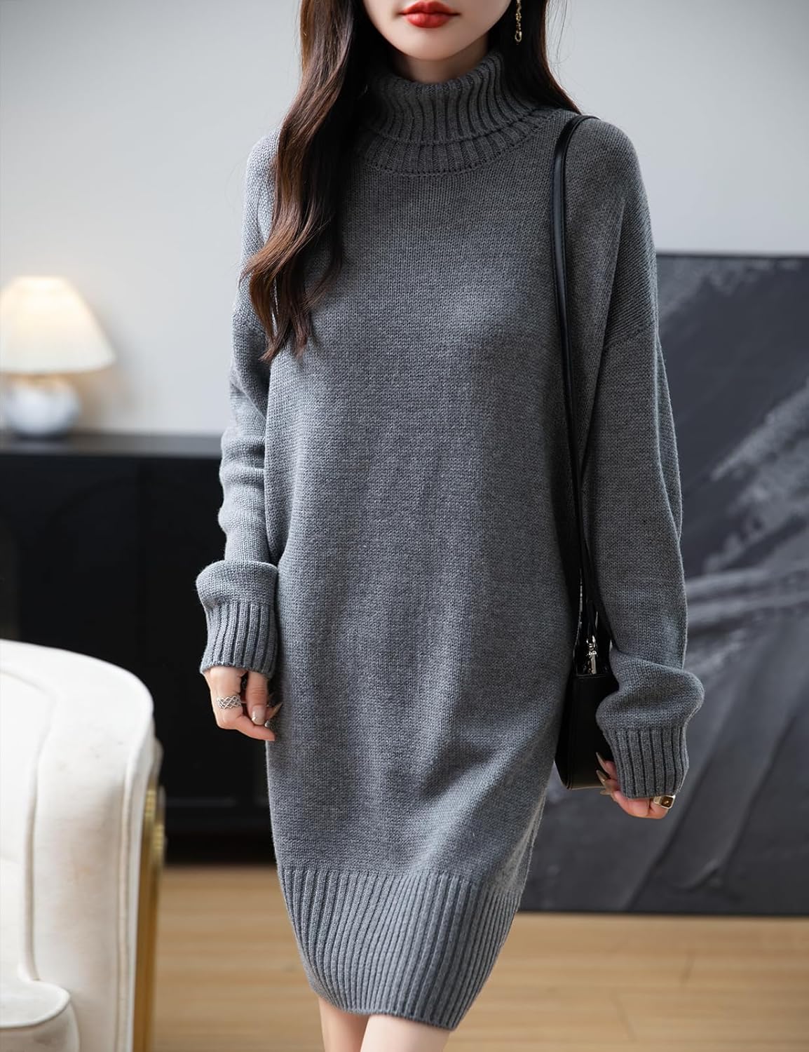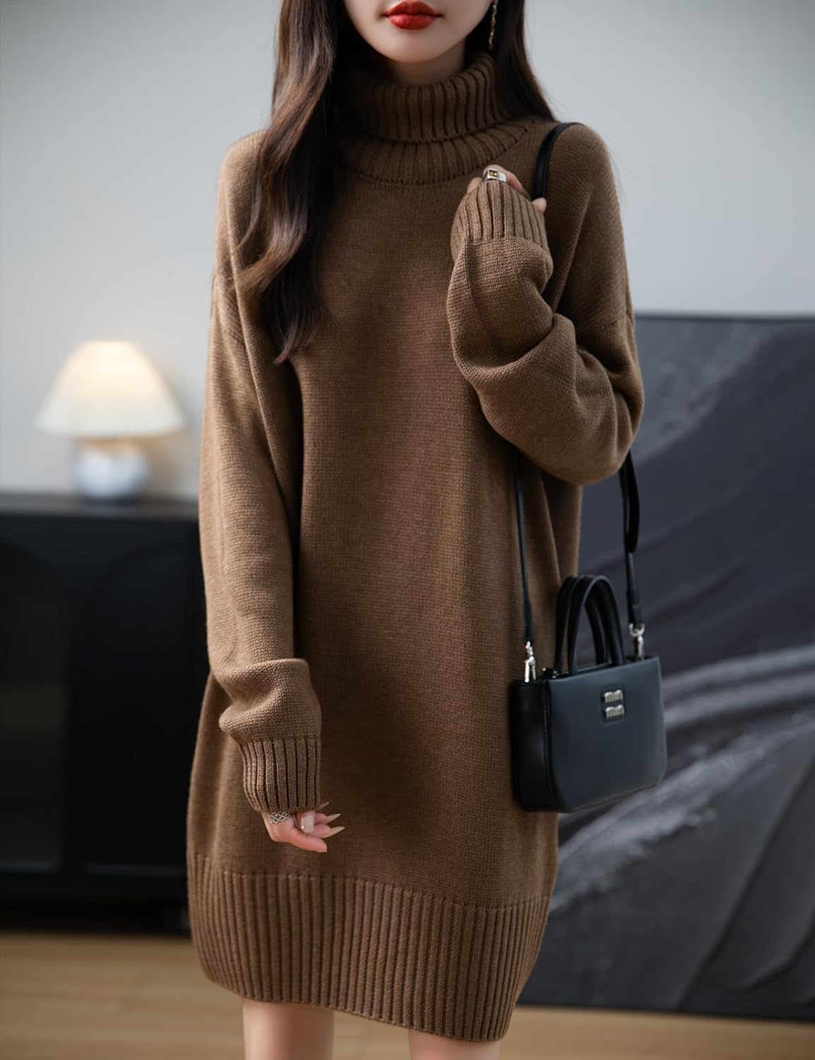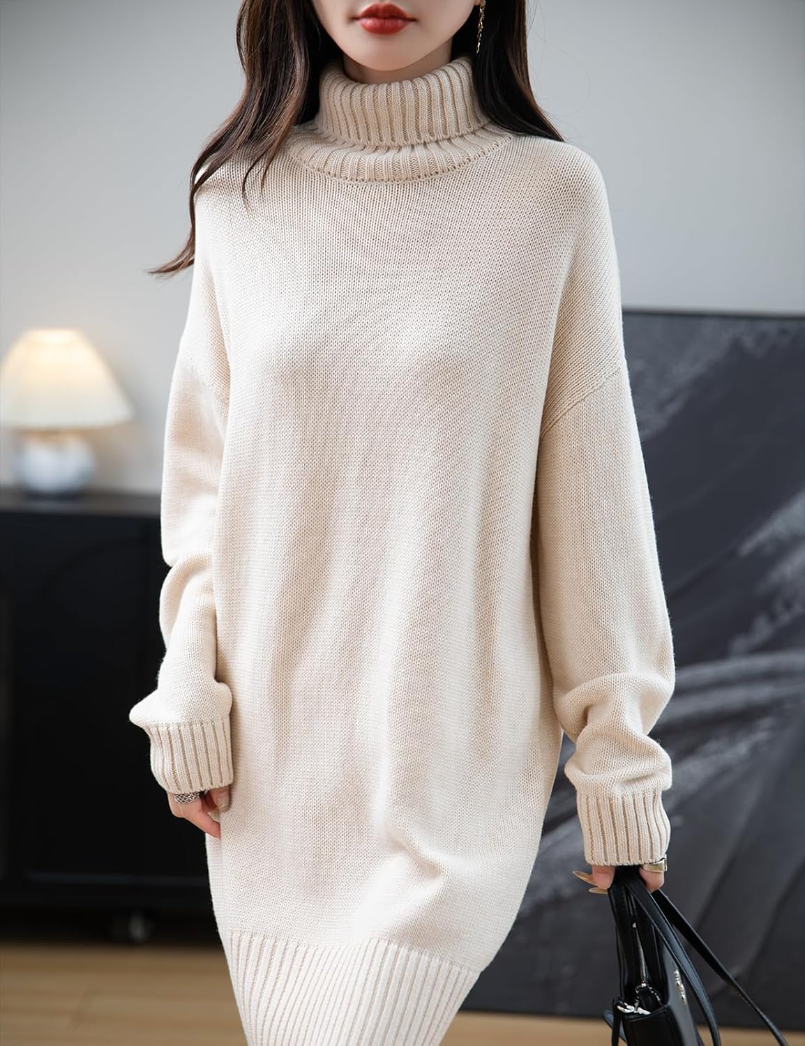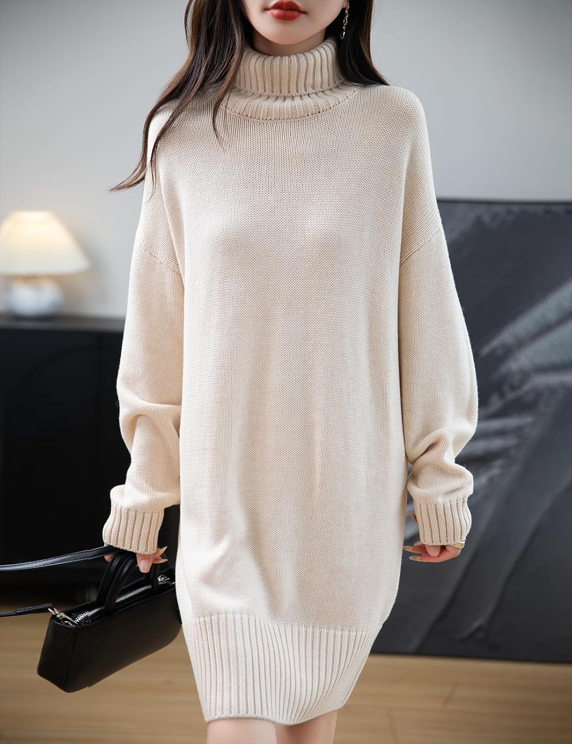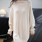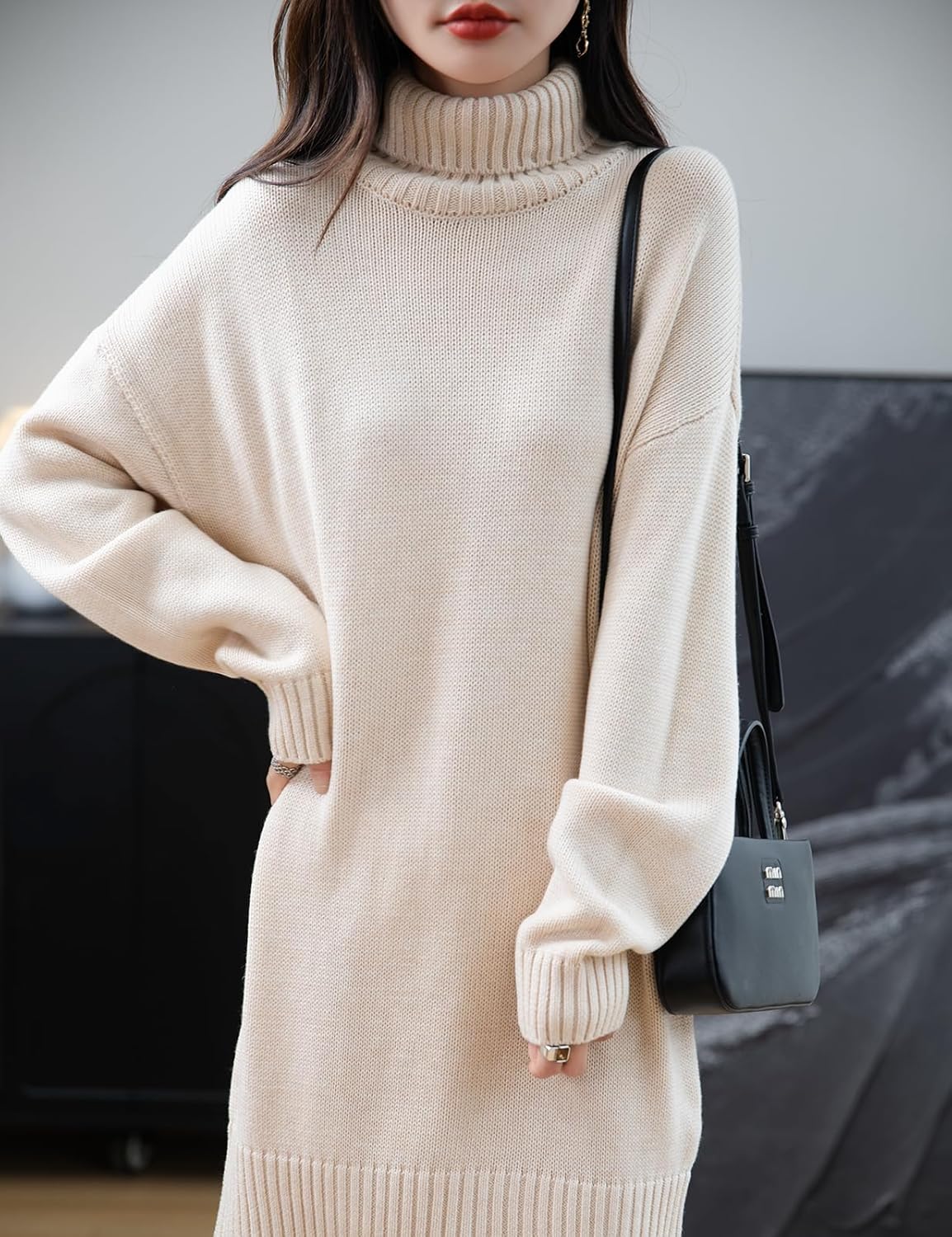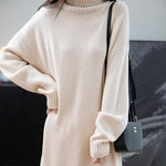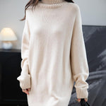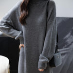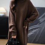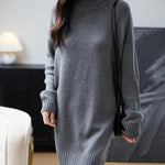Merino Wool Blend Turtleneck Oversized Sweater Dress
