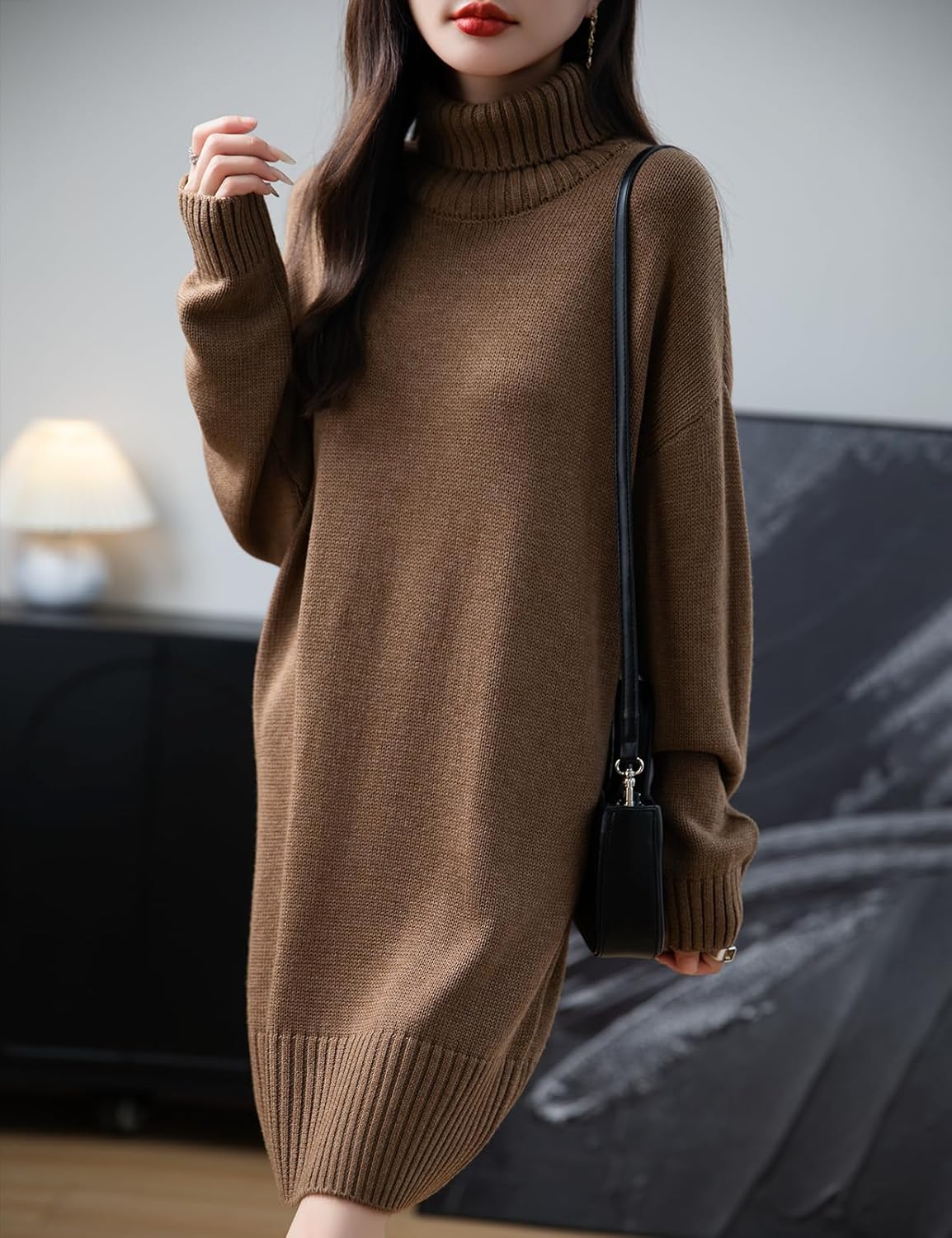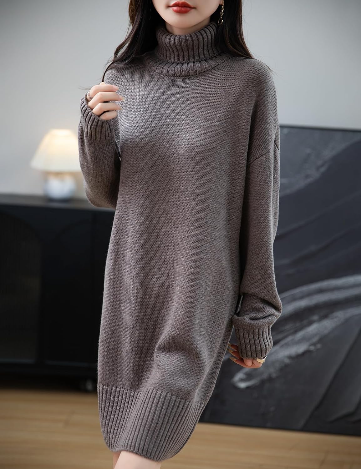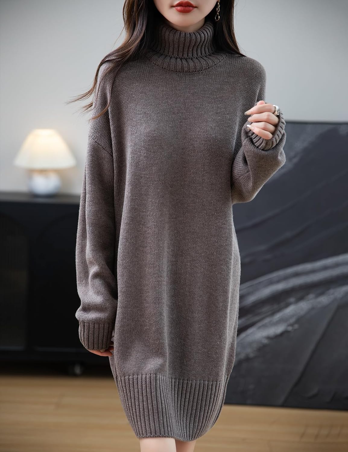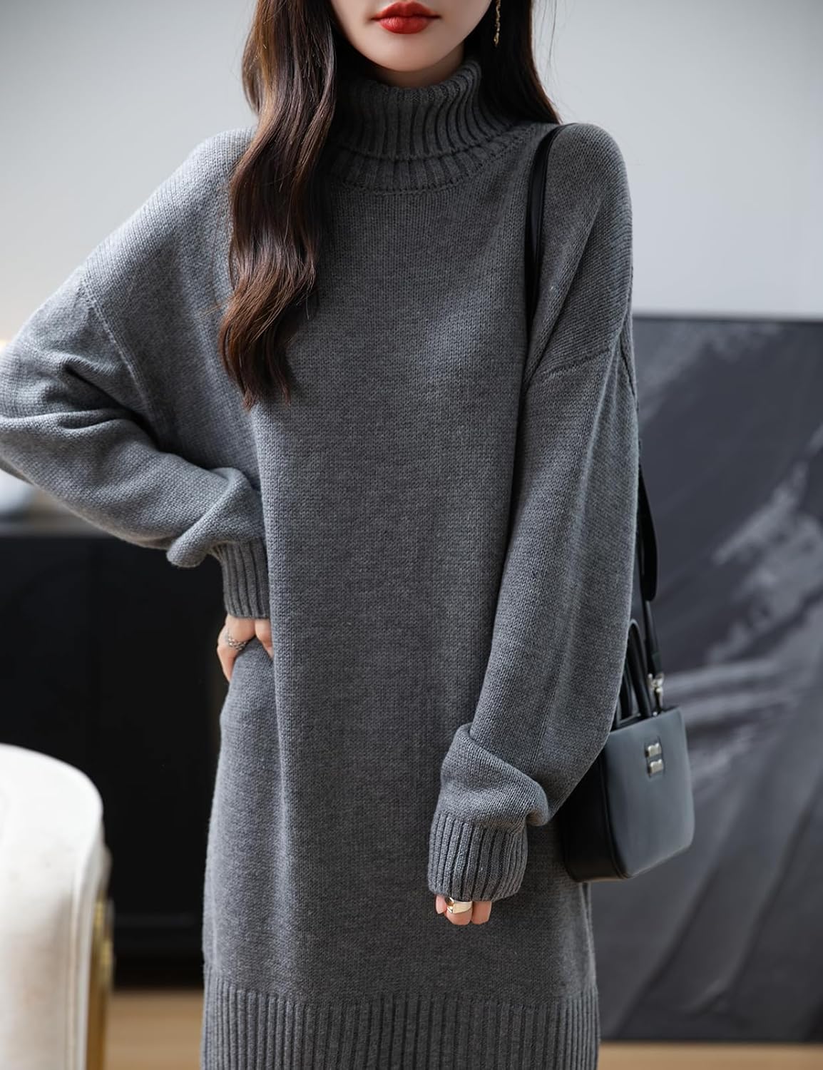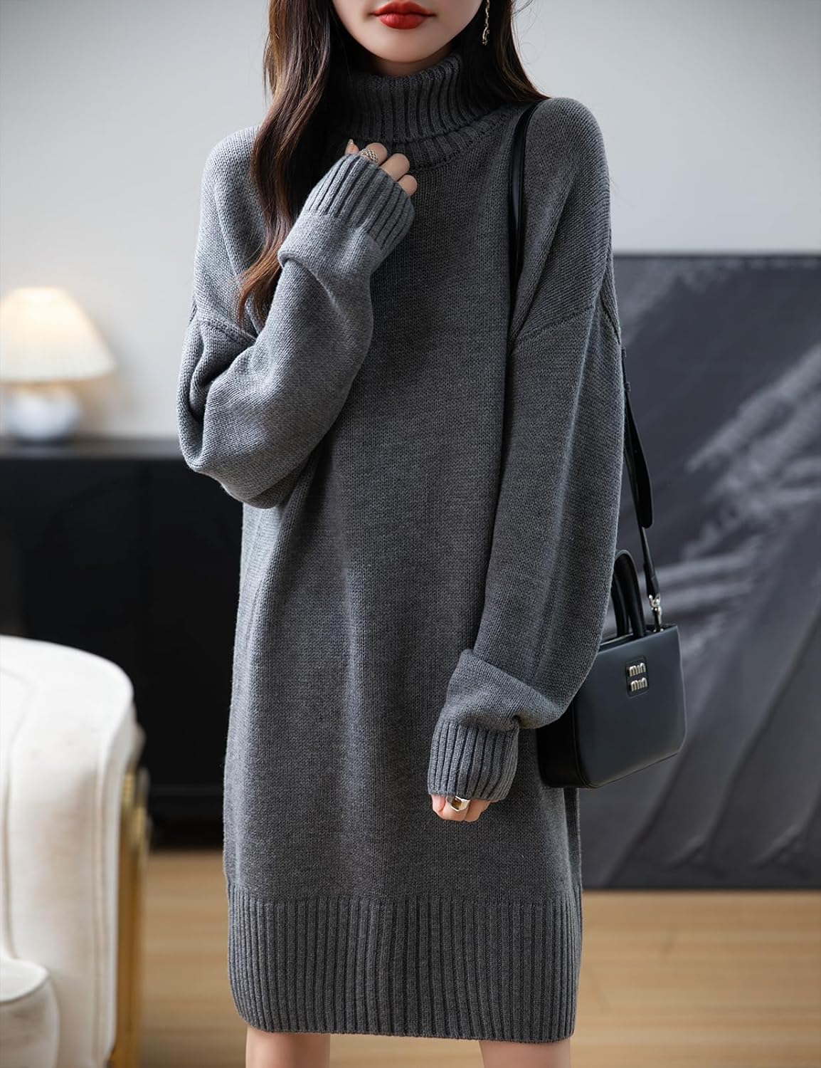Merino Wool Blend Turtleneck Oversized Sweater Dress
