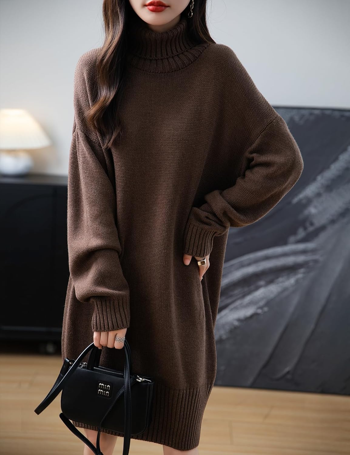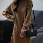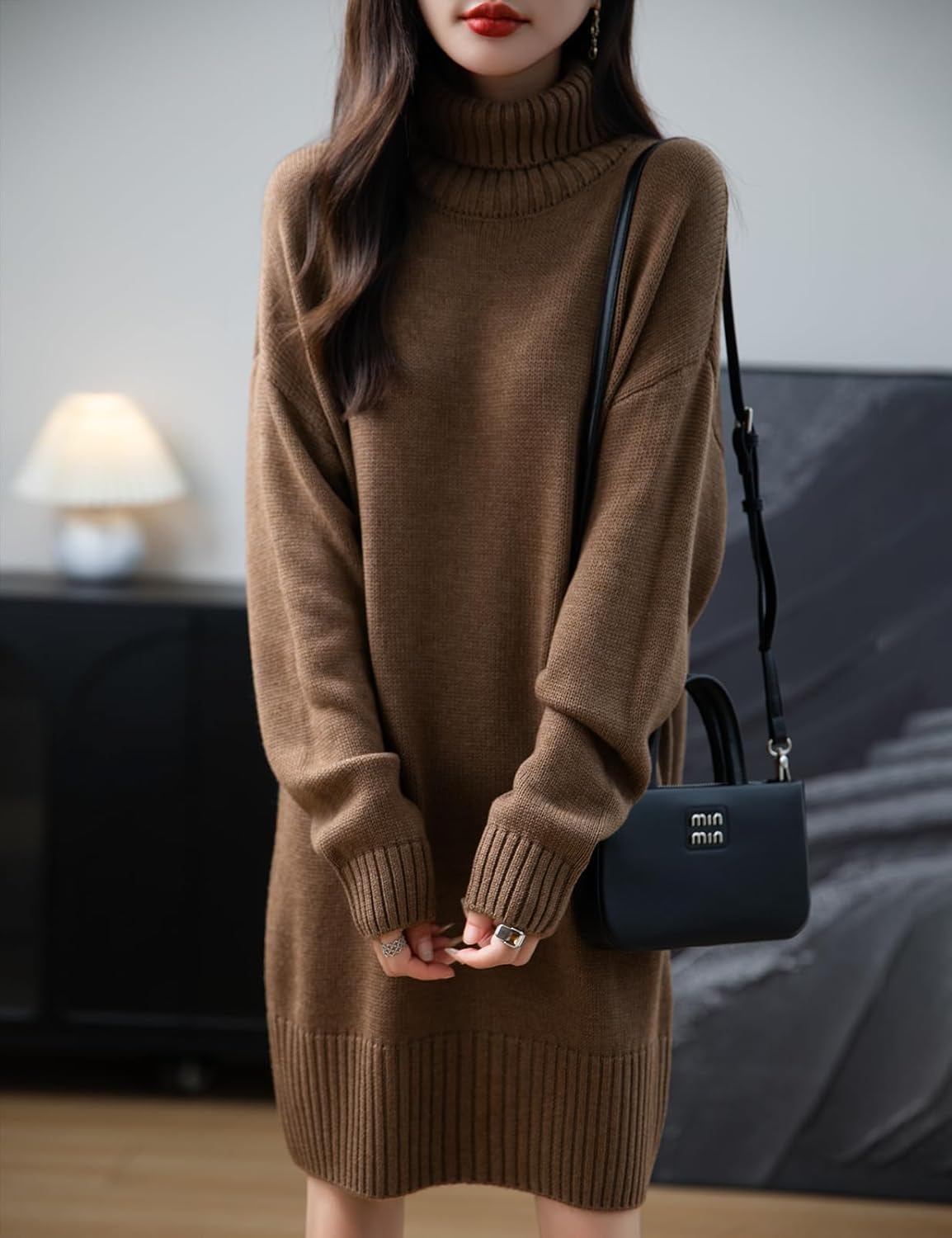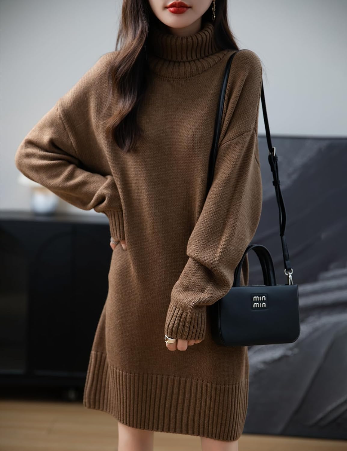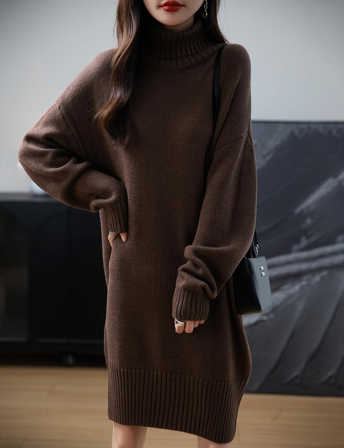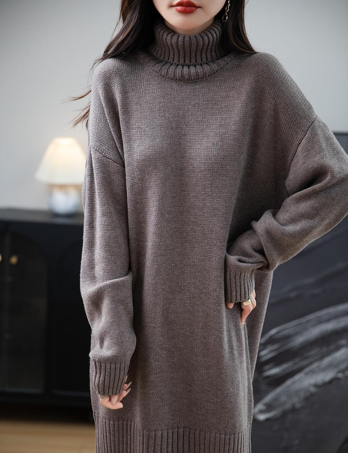 Merino Wool Blend Turtleneck Oversized Sweater Dress