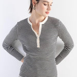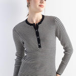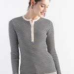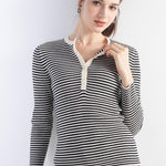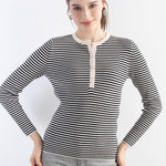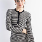 Merino Wool Blend Striped Slim Fit Crew Neck Knit Sweater