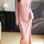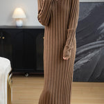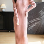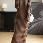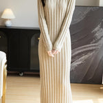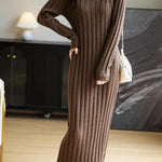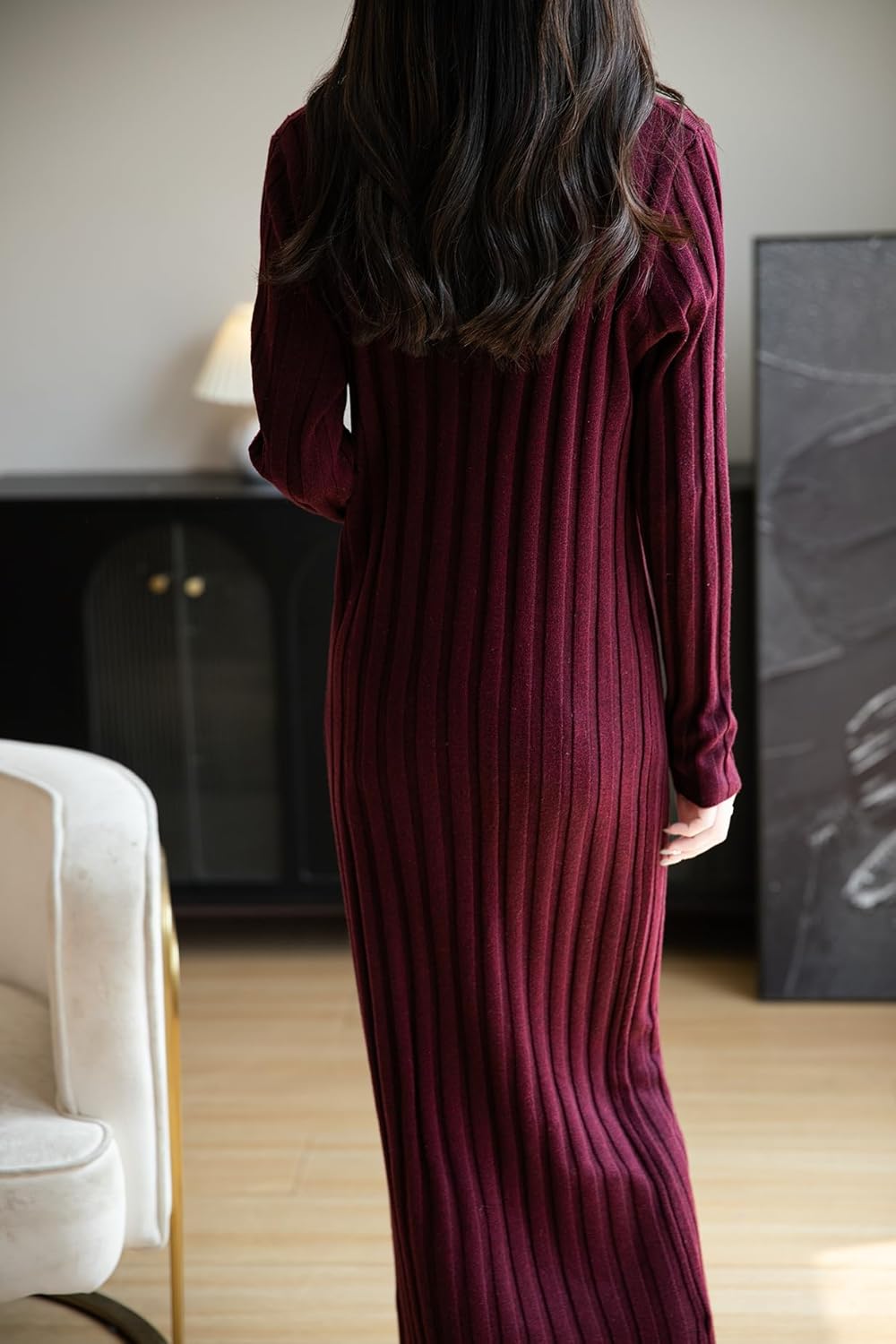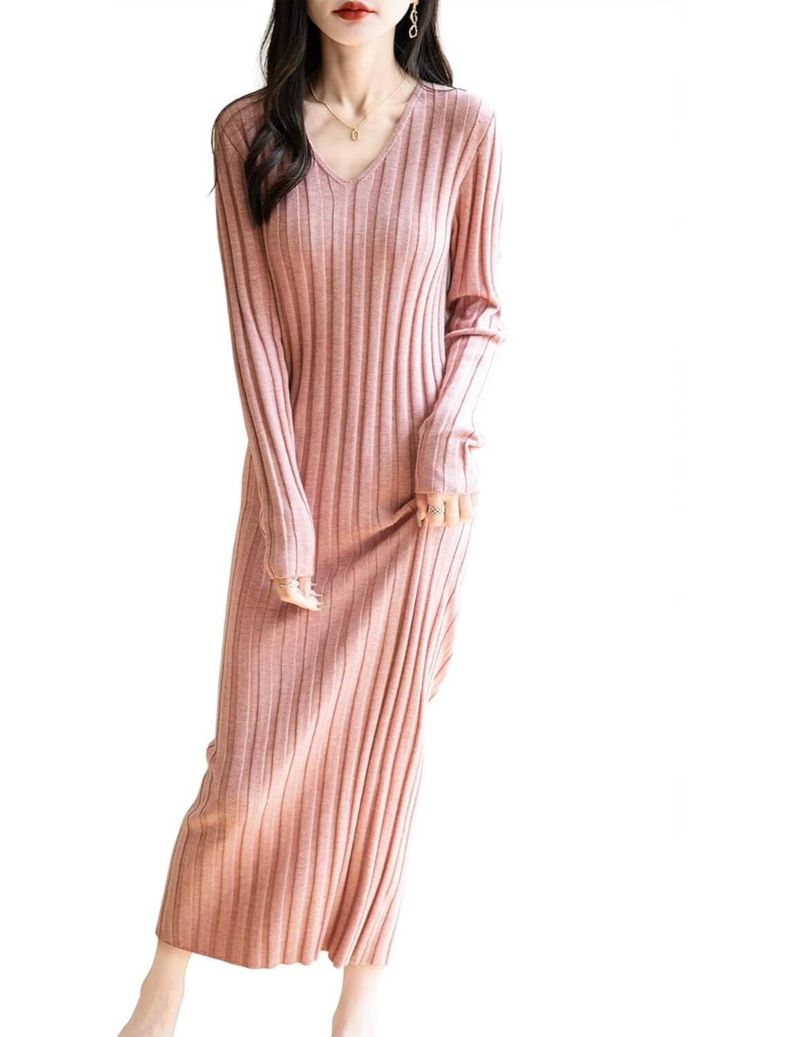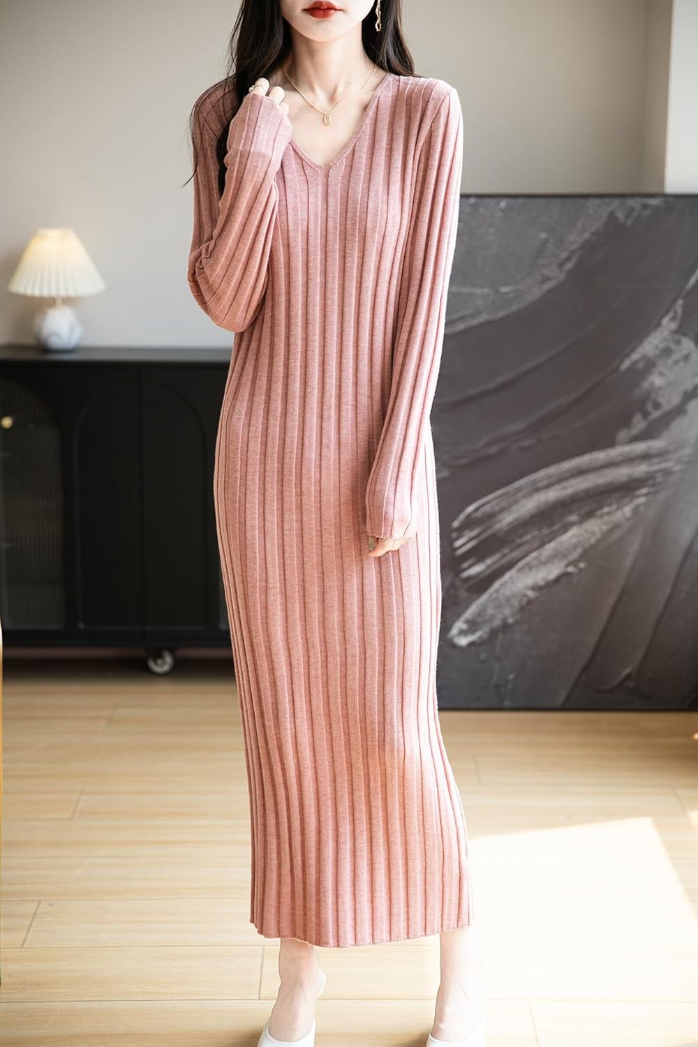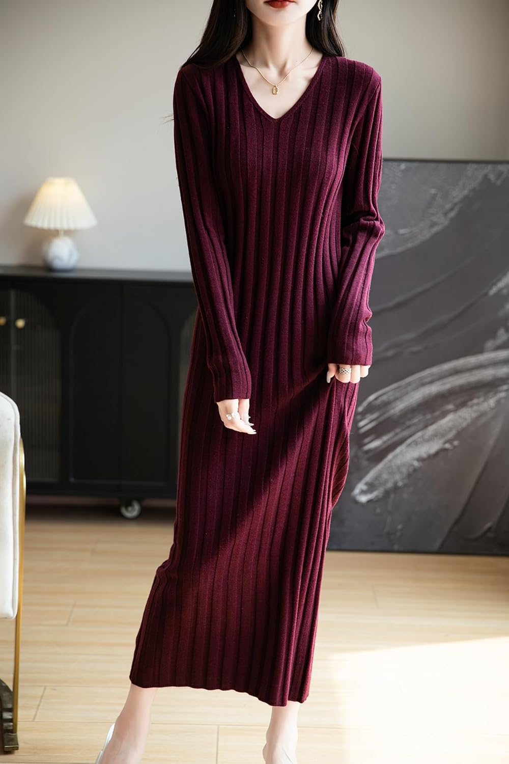Ciovkis, Women's Merino Wool Blend Long Sweater Dress Fashion 2025 Spring Fall Casual V-Neck Long Sleeve Ribbed Knit Dress.This dress looks just like the product photos. It's a ribbed knit, lightweight yet warm, stretchy, and form-fitting. I ordered the XL, and it fits me just like it does on the model. I'm 5'5", 160 lbs, with a 40DD bust, 30" waist, and 40" hips. I absolutely love this dress—it can be dressed up or down, perfect for layering or wearing on its own. It's very well-made; I washed it on delicate, line dried it, and it came out perfectly.