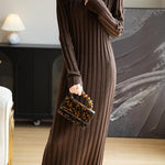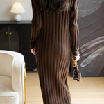 Merino Wool Blend V-Neck Ribbed Bodycon Knit Dress