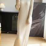 This dress is comfy, cozy, and stylish all at once. I love the merino wool blend — it keeps the softness and quality of real wool without the itch or tricky care instructions. It wears, washes, and dries beautifully, and the fabric feels durable yet comfortable. The length is also perfect (a rare find for my 5'11" frame, since most dresses tend to run short). A perfect balance of warmth and everyday elegance!