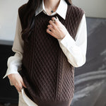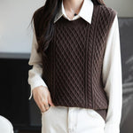 Merino Wool Blend Classic Crew Neck Cable Knit Vest