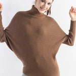 Merino Wool Oversized Turtleneck Batwing Knit Sweater